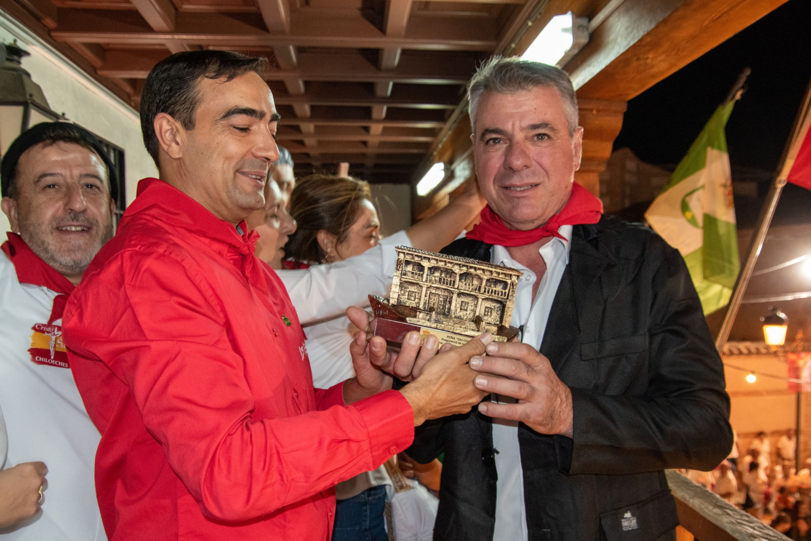 Fin de semana muy intenso el que vivieron los vecinos de Chiloeches. Desde que el viernes saliera la Ronda Raices a tocar, las calles respiraban ambiente diferente, de fiesta. Comenzaron, oficialmente, el sábado, con el desfile de carrozas y el pregón de la peña OH! Chilo. Jesús Nieto, Rodolfo Jiménez y Jaime Vázquez llamaron a la diversión a todos los presentes, desde el balcón del ayuntamiento. Coronaron a sus Reinas y Damas, que también dijeron unas palabras. A partir del chupinazo, la algarabia tomó las calles. Una larga noche que terminó en el amanecer del domingo y el tributo al patrón, el Cristo de la Salud. Hoy toca empezar con los actos taurinos.