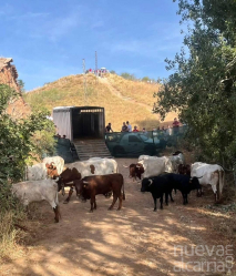 Como antiguamente, dos novillos bravos adquiridos a la ganadería José María López, fueron trasladados desde el paraje de “Albolleque” hasta el corazón del municipio: su plaza de toros.