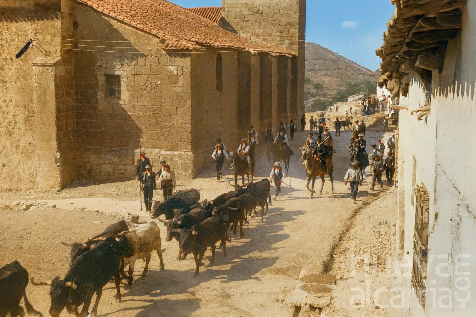 A las once de la mañana comenzará el traslado de los dos novillos, únicamente con personas a pie y a caballo, desde el paraje de Albolleque hasta la plaza de toros, que será aproximadamente sobre las doce y media de la mañana.