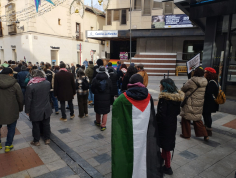 La protesta local de Guadalajara no solo pidió agilizar la evacuación humanitaria de la familia de Alghalban, sino que reclamó al Gobierno español la ruptura de relaciones diplomáticas con Israel, el apoyo a la resistencia palestina y que se ponga fin a las ambigüedades de los gobiernos europeos.