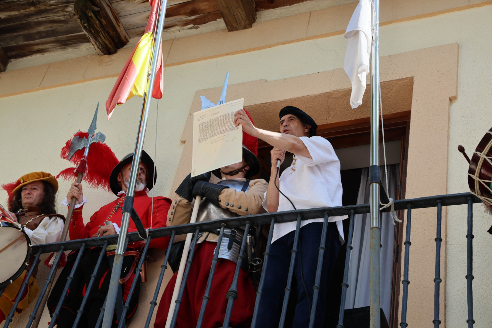 Uno de los momentos más simbólicos fue la lectura de una carta escrita el 19 de marzo de 1493 por el propio duque de Medinaceli a su tío, el cardenal Mendoza, en la que comunicaba con entusiasmo el éxito del primer viaje de Cristóbal Colón. El texto, considerado uno de los primeros testimonios privados sobre el descubrimiento del Nuevo Mundo, fue interpretado desde el balcón del Ayuntamiento por Erundino Alonso, conocido divulgador cultural. Su pregón fue precedido y seguido por el redoble de tambores, como requería la ocasión.