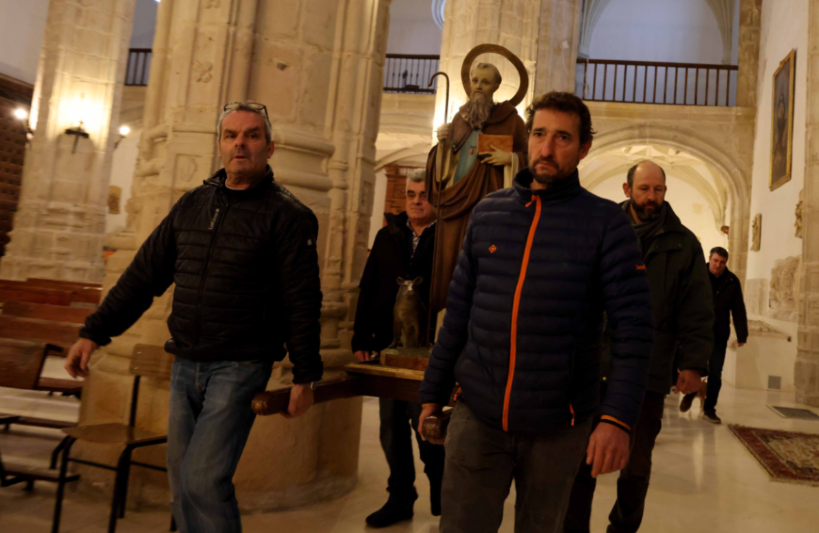 Por la Puerta de la Santísima Trinidad, los animales ingresaron al templo y presenciaron la ceremonia desde la parte trasera del templo. La procesión del Santo, animada por el coro parroquial, recorrió la nave del templo en tres vueltas antes de la bendición de panes y mascotas, resaltando la unión de la fe y el respeto por la vida animal.