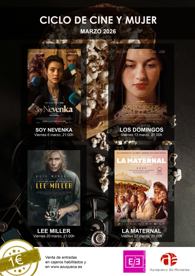 La película “Soy Nevenka” abre el Ciclo de Cine y Mujer que ha programado el Ayuntamiento de Azuqueca de Henares durante este mes con motivo del 8 de Marzo, Día Internacional de las Mujeres. La cartelera incluye cuatro títulos para los viernes de marzo y todas las sesiones comienzan a las 21 horas en la sala del Espacio Joven Europea (EJE). El precio es de 1 euro y las entradas se pueden comprar de manera anticipada en los cajeros ciudadanos y en esta página web.