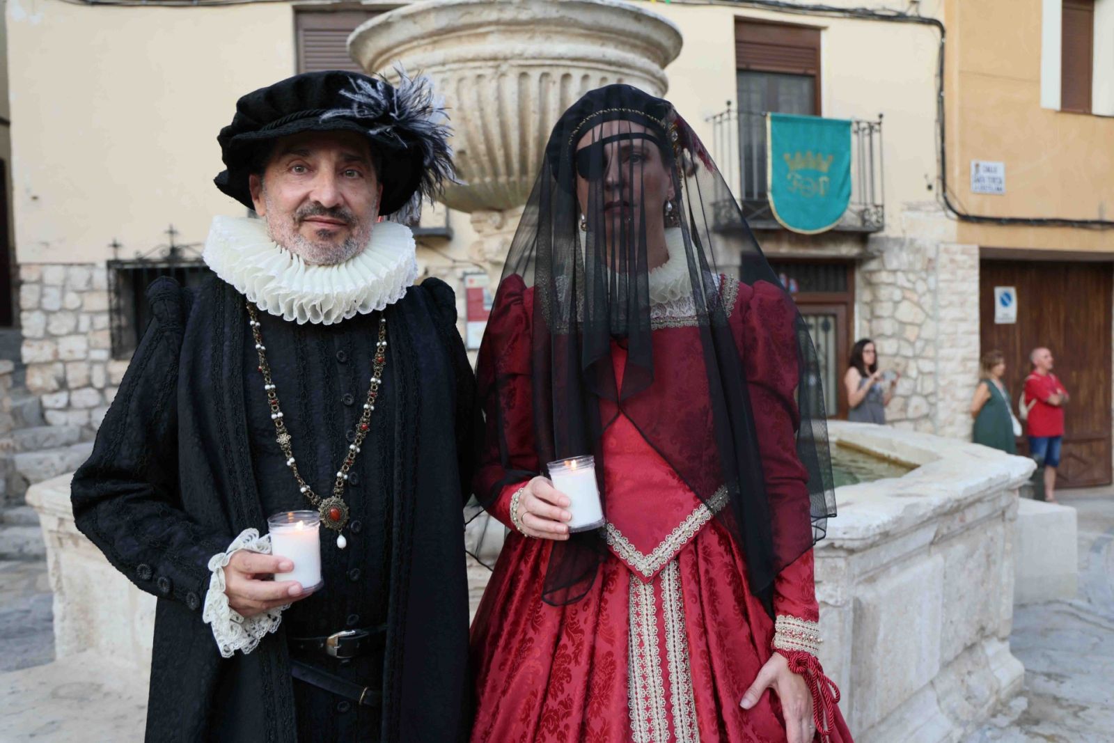 Fueron desfilando, así, los nombres y figuras de los grandes protagonistas, desde el maestre calatravo que obtuvo el privilegio de villazgo en 1369, hasta Simuel Francés, representante de la comunidad judía expulsada en 1492; Ana de la Cerda, promotora del palacio-fortaleza; la Princesa de Éboli, doña Ana de Mendoza, eje del relato histórico y sentimental del Festival; y su esposo, Ruy Gómez de Silva, valido de Felipe II y primer duque de Pastrana. A ellos les siguieron sus hijos y nietos, mecenas, políticos, militares, religiosos, mujeres marcadas por la tragedia o la devoción, como Ana de Silva y Mendoza, que eligió el claustro tras un destino quebrado. La evocación se cerró con las figuras místicas de Teresa de Jesús, fundadora de los conventos carmelitas de la villa, y San Juan de la Cruz, maestro de novicios en el convento de San Pedro. También se recordó a la singular Catalina de Cardona, la eremita que intentó imponer una vida aún más austera que la de los descalzos.
