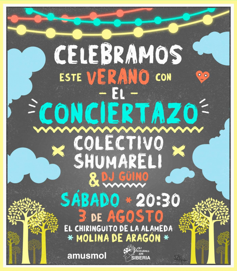 Este sábado 3 de agosto, en el Chiringuito de la Alameda, en Molina de Aragón concierto para disfrutar de la presencia y talento de Colectivo Shumareli.