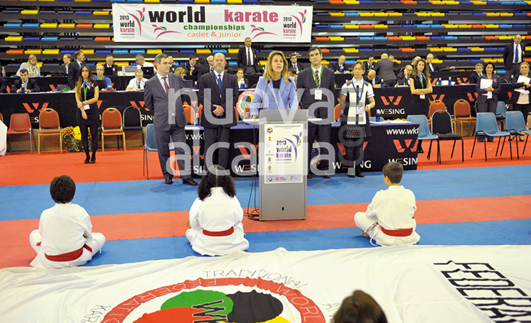 La presidenta ha inaugurado este Campeonato del Mundo, junto al presidente de la Federación Mundial de Kárate, Antonio Espinós, su homólogo español, Antonio Moreno, así como el secretario de Estado para el Deporte, Miguel Cardenal. Asimismo, han participado en esta ceremonia de apertura los embajadores de Arabia Saudí y Japón en España. Junto a todos ellos, la presidenta ha valorado la importancia de potenciar los deportes de base, tal y como está haciendo el Gobierno que preside. Así, ha tenido la oportunidad de saludar y animar personalmente a los integrantes de la delegación española, deseándoles los mejores éxitos.