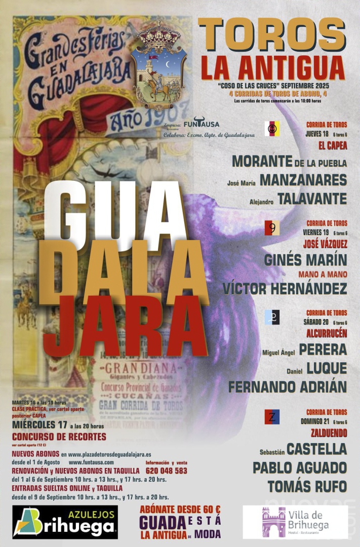 Desde el 1 de Agosto en las páginas web de la empresa FUNTAUSA www.plazadetorosdeguadalajara.es y www.funtausa.com se están poniendo a disponibilidad de los aficionados tanto la venta de nuevos abonos como la renovación de los mismos, los descuentos son del 10%.