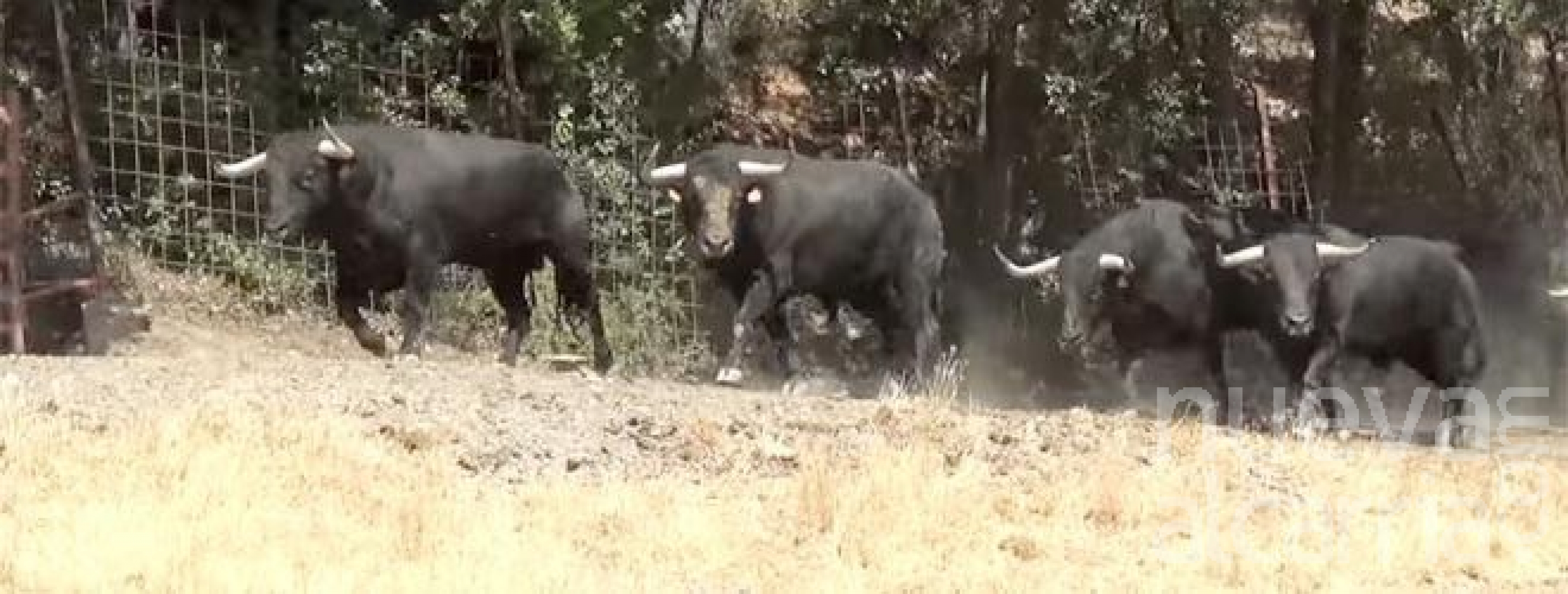 Campo Bravo Alcarreño organiza esta suelta que se aprovechará en este año para rendir homenaje al ganadero Pedro Sopeña, que la organizó durante cincuenta años, y que ha fallecido recientemente. Se llevarán crespones negros. En la imagen, foto de www.toroalcarria.com, los cuatro toros protagonistas del encierro.