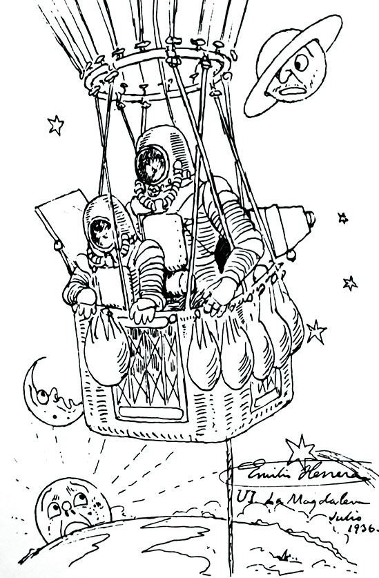Pero el logro más visionario, el que más nos interesa en este artículo, data de 1935. Se trata, nada menos, de la escafandra estratonáutica, un traje presurizado que incluía regulación de presión, sistema de respiración, micrófono y mecanismos para facilitar el movimiento de las articulaciones. La propia NASA manifestó que aquella escafandra fue la precursora directa de sus trajes espaciales, incluso Neil Armstrong trajo en su honor una piedra lunar. No en vano, ya en 1932 Herrera Linares estuvo ideando cómo hacer un viaje tripulado a la Luna.