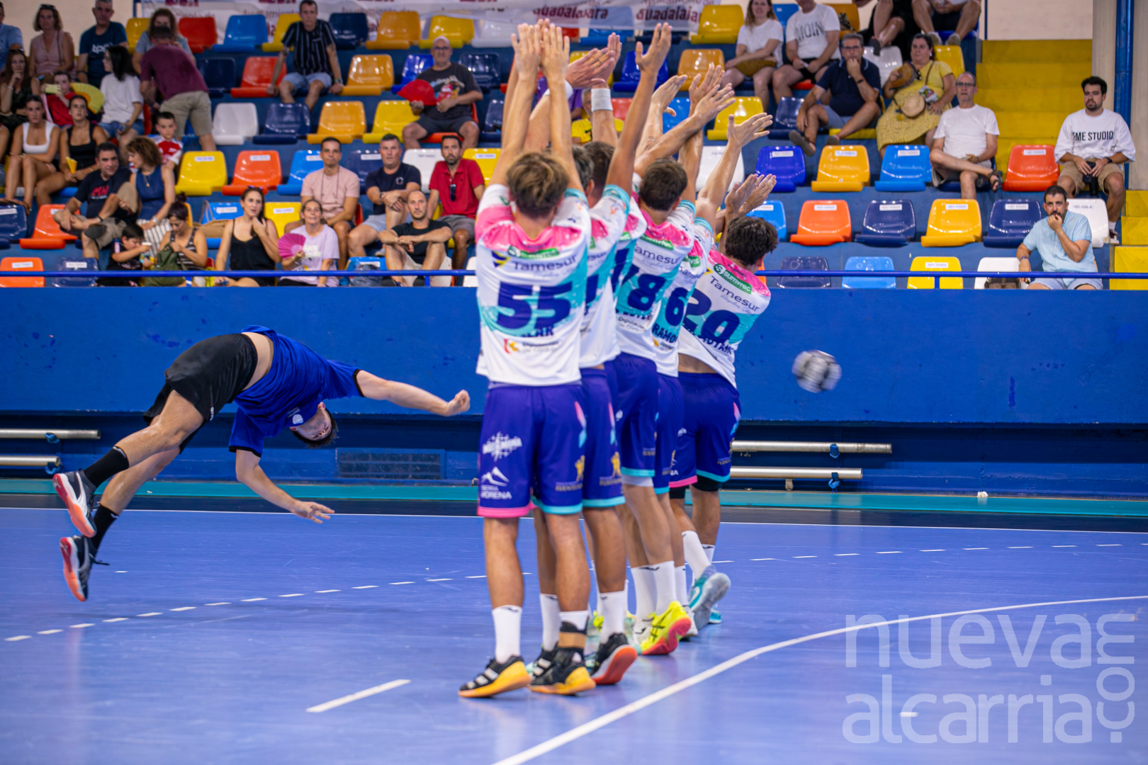 El segundo partido de pretemporada tenía lugar en el David Santamaría el sábado y enfrentaba a los de Guadalajara con el Ángel Ximénez Puente Genil, un claro rival por la permanencia. La presentación del conjunto de Requena ante su afición llegaba con un rival de altura. En los locales, algunos jugadores tomaban descanso para repartir cargas en esta dura pretemporada y por ello quedaban fuera de la convocatoria Fabio Chiuffa, Manu Catalina y Dániel Fekete, cuyas posiciones eran hábilmente ocupadas por los canteranos que están disputando la pretemporada con el primer equipo: Jorge Blanco, Héctor Cezón, Dani Calvo, Adrián Duque y Ángel Esteban.