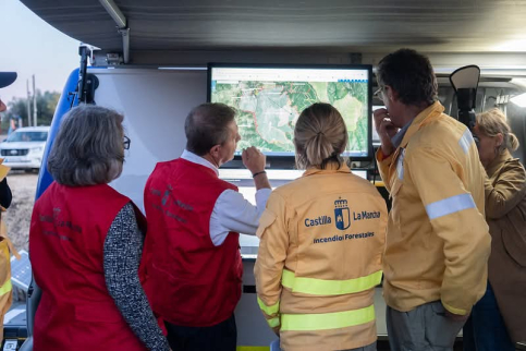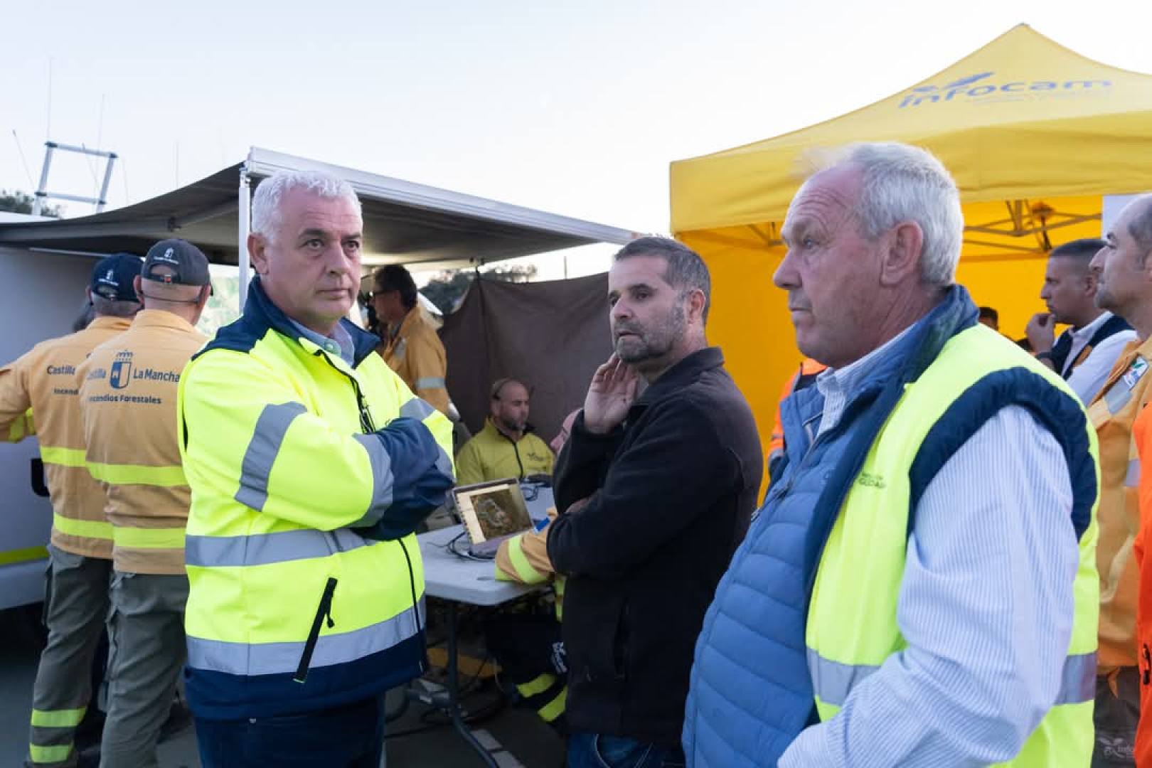 El presidente de la Diputación de Guadalajara, José Luis Vega, se ha desplazado esta tarde al Puesto de Mando Avanzado del incendio de Peñalba de la Sierra para seguir de cerca las labores de extinción coordinadas por el Plan Infocam, al que la Institución provincial está prestando apoyo.