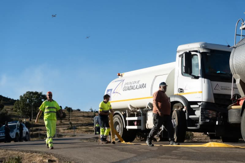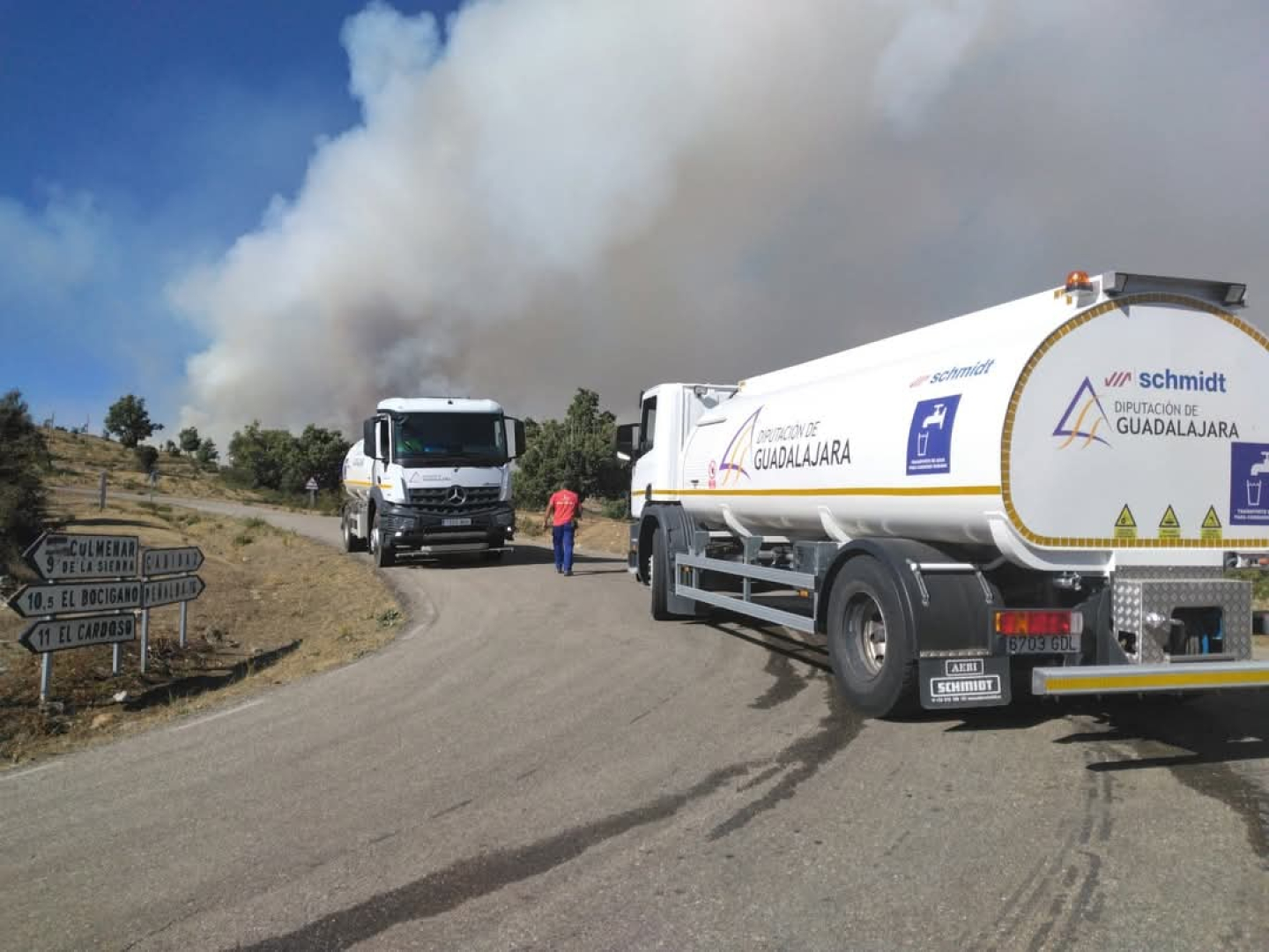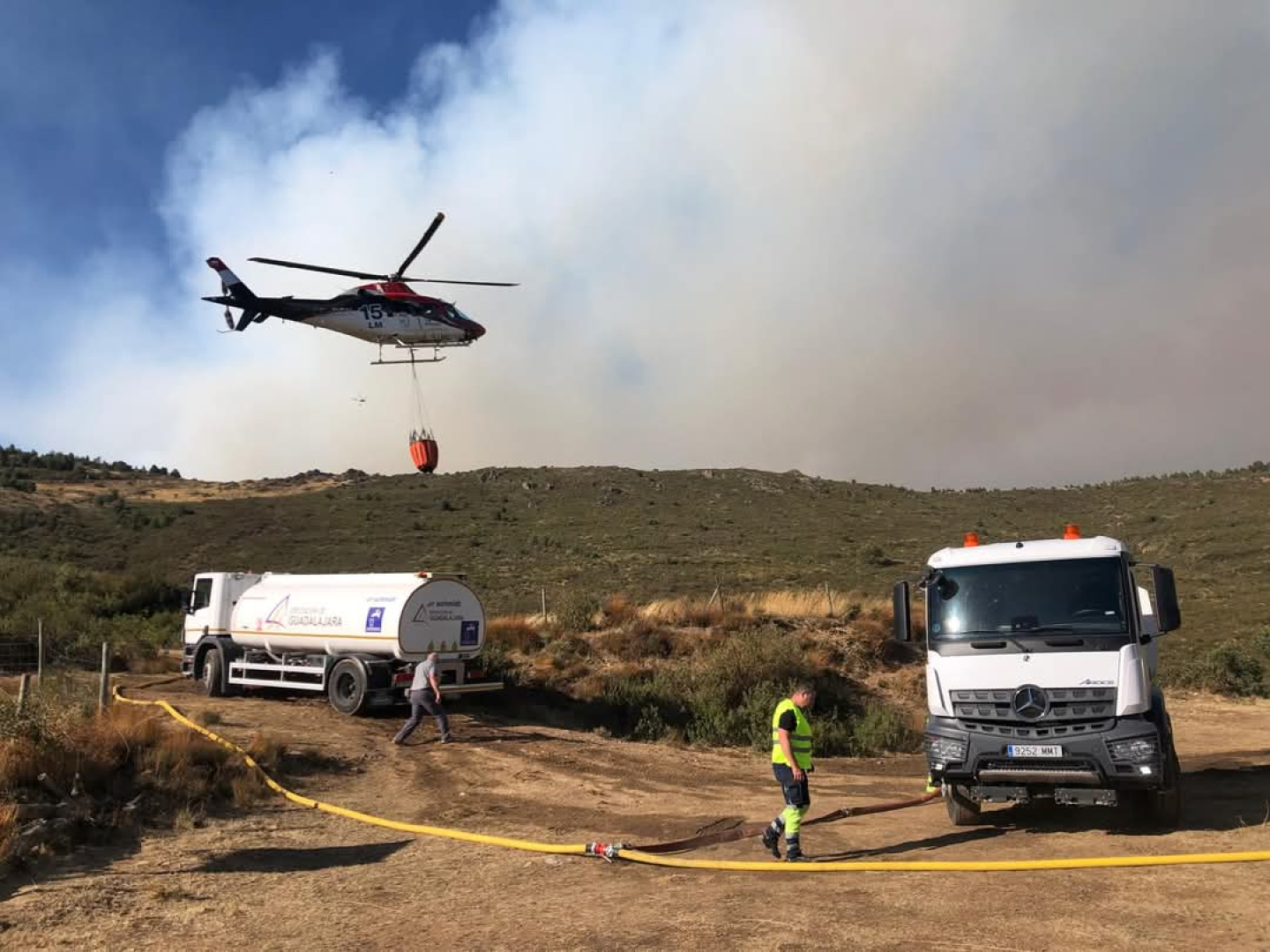 A lo largo de la jornada, la Diputación ha reforzado su colaboración con el envío de dos dotaciones preventivas del Consorcio Provincial de Bomberos, situadas en Peñalba de la Sierra y Cabida, así como de un vehículo nodriza para el suministro de agua y seis camiones cisterna de 10.000 litros, movilizados desde los servicios de Infraestructuras y Centros Comarcales, con el fin de abastecer a los equipos que trabajan en el terreno.