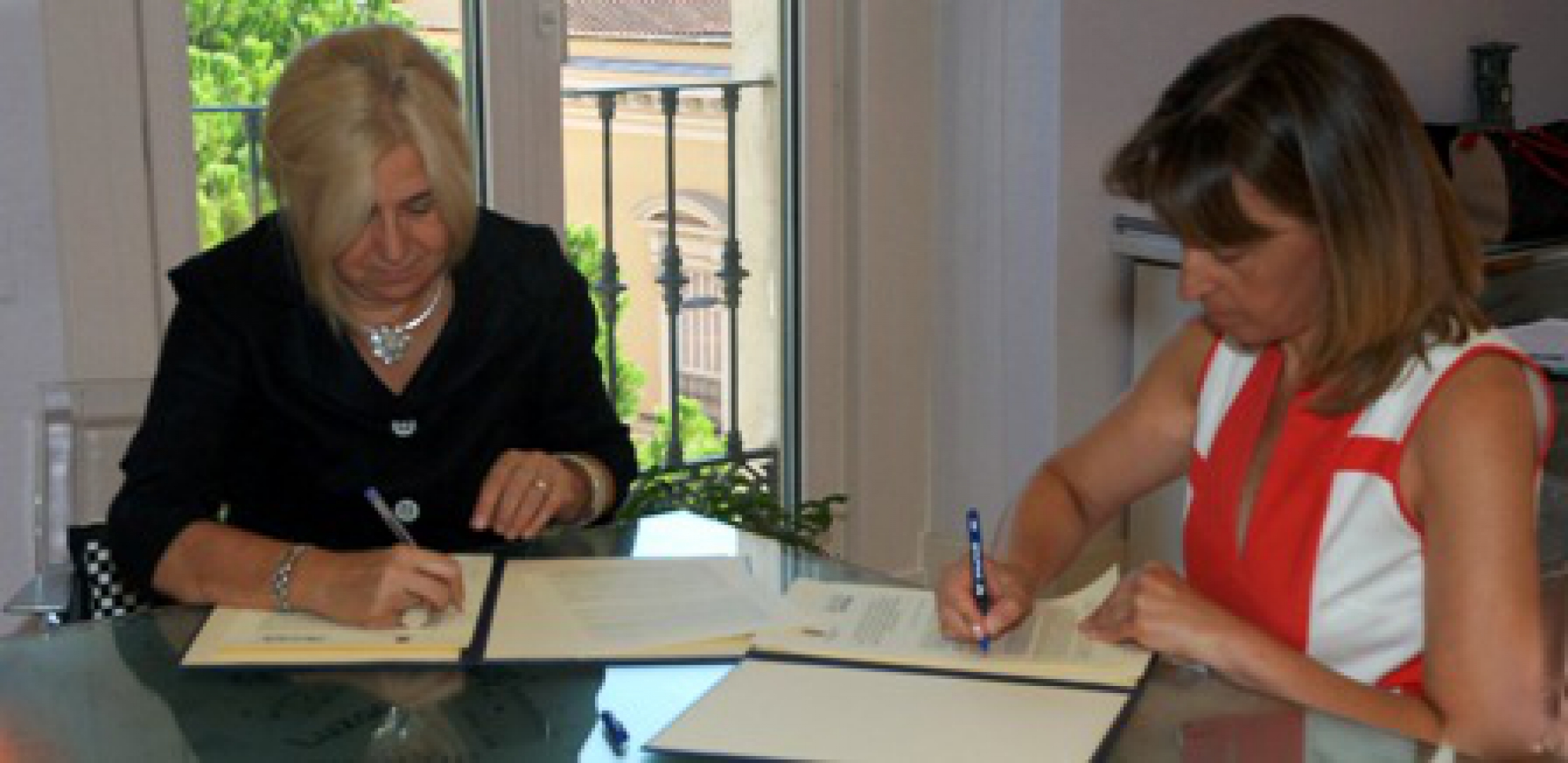 La presidenta de la Diputación, Ana Guarinos, y la directora nacional de ACCEM (Asociación Comisión Católica Española de Migración), Julia Fernández Quintanilla, han firmado el convenio de colaboración para favorecer el acceso al mercado de trabajo de personas con especiales dificultades, a través de un programa que se lleva a cabo en la Sierra Norte de la provincia.