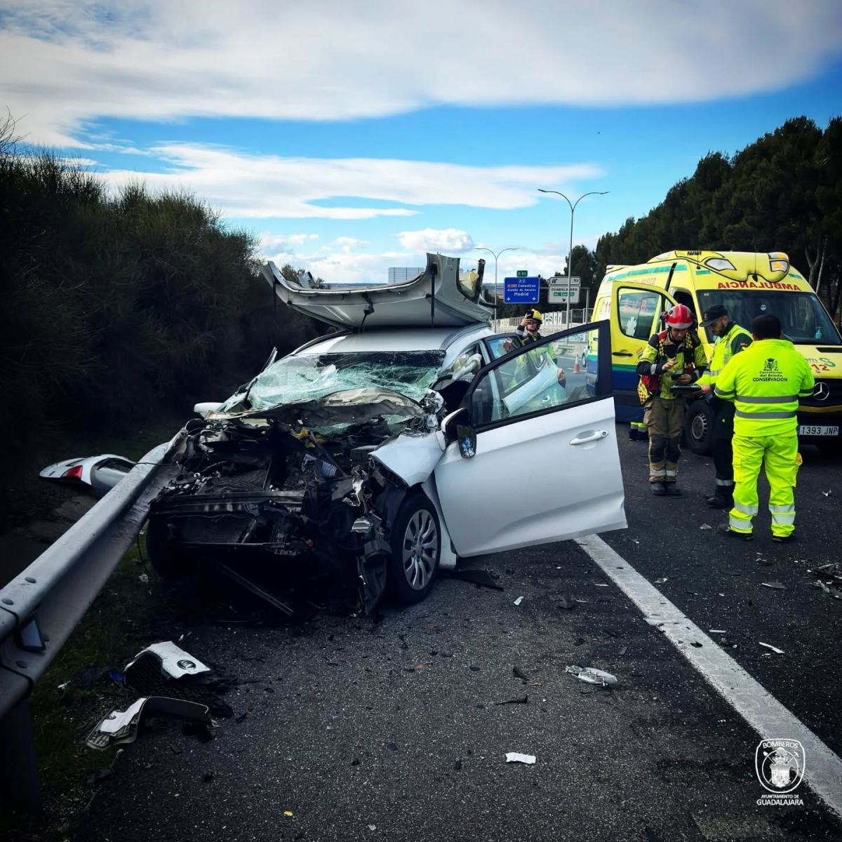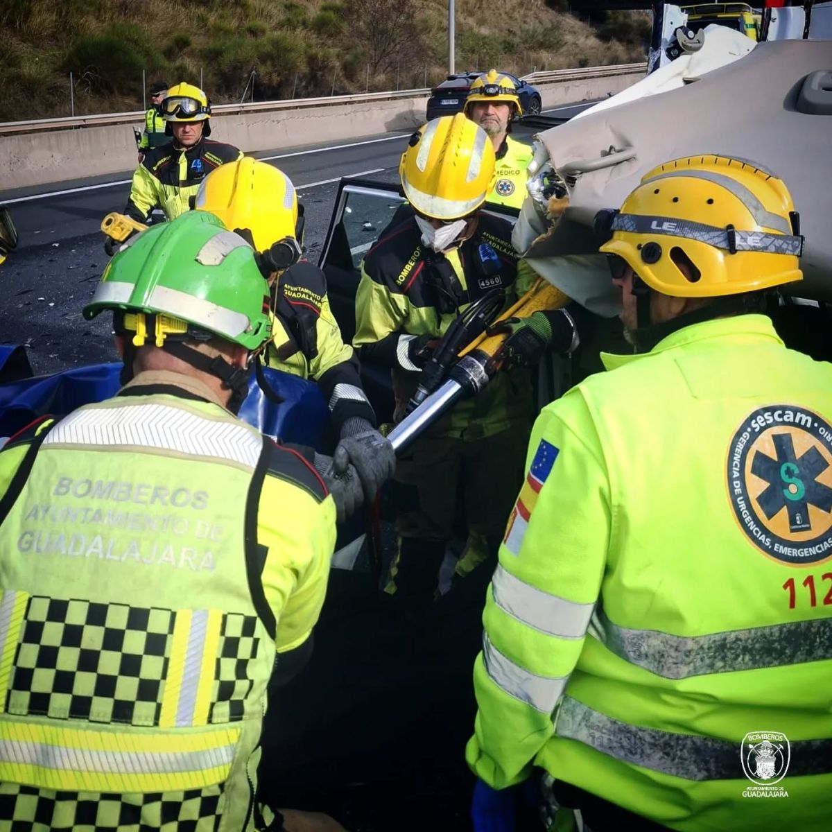 El operativo se coordinó con los efectivos de la Gerencia de Urgencias, Emergencias y Transporte Sanitario de Castilla-La Mancha (GUETS-CLM), quienes supervisaron la estabilización de los heridos desde el interior del vehículo antes de su transferencia a las camillas de transporte sanitario. Tras ser liberados, los ocupantes fueron trasladados al Hospital General Universitario de Guadalajara para su posterior valoración facultativa.