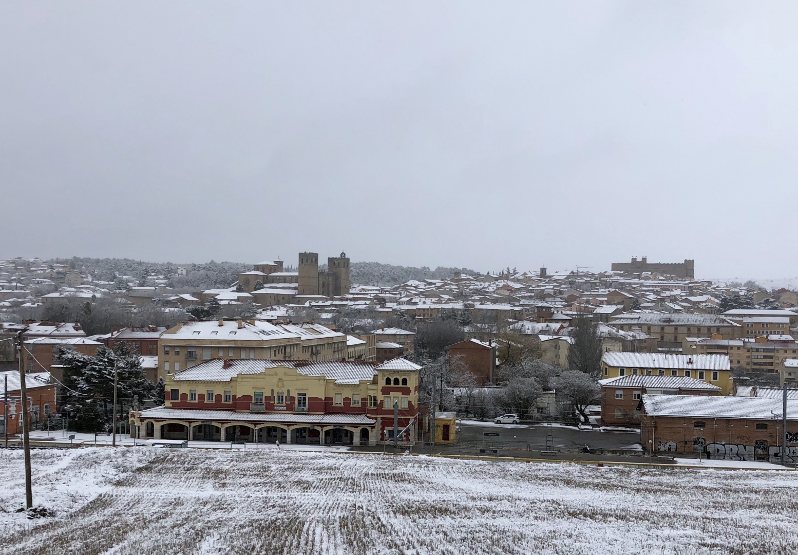 En todos los casos donde pudiera existir el más mínimo riesgo para la circulación del transporte escolar de alumnado o desplazamientos del profesorado hay autorización para suspender la actividad lectiva. Foto de Sigüenza tomada por Emilio Fernández Galiano.