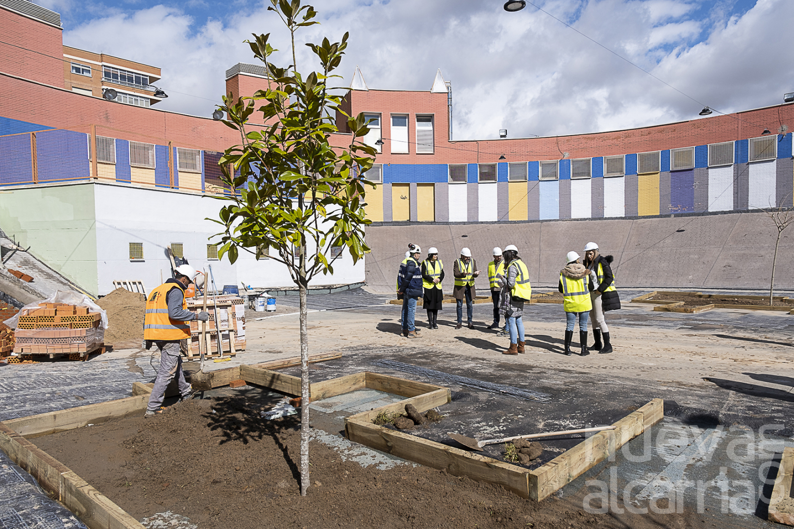 “El objetivo es, por un lado, integrar la zona exterior y el edificio y facilitar el acceso de dentro a fuera y viceversa y, por el otro, crear una zona estancial agradable con bancos y zonas verdes con árboles, arbustos y plantas, además de la instalación de césped artificial”, ha detallado la concejala de Innovación Urbana, Yolanda Rodríguez, que visitado también las obras, junto con el edil de Ciudad Sostenible, Antonio Expósito, y técnicos del departamento municipal de Urbanismo.