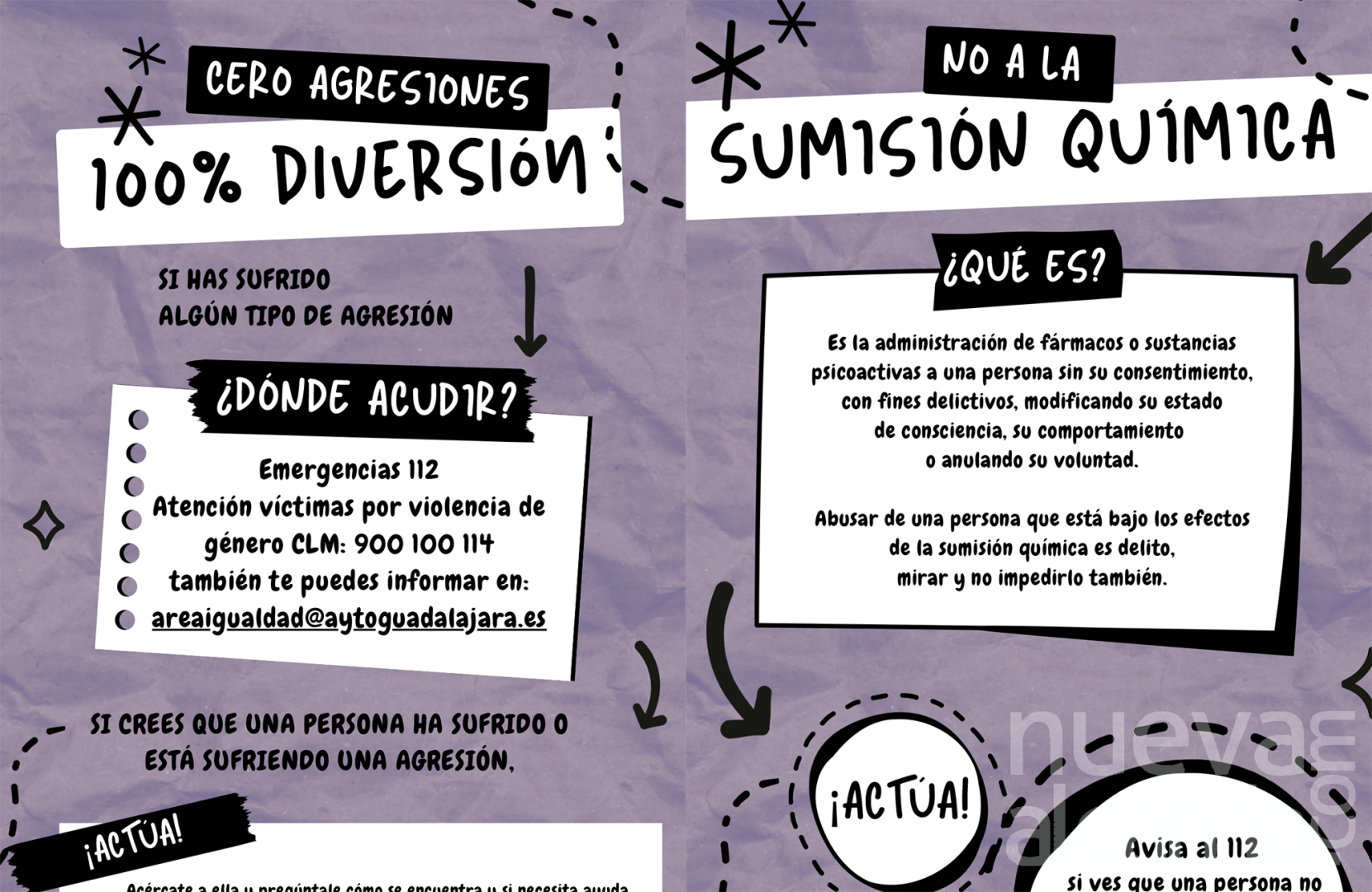 El Ayuntamiento de Guadalajara a través de la concejalía de Igualdad lanza esta Feria Chica una campaña para prevenir las agresiones sexuales que por primera incluye información y concienciación sobre el fenómeno de la sumisión química, que es la administración de fármacos o sustancias psicoactivas a una persona sin su consentimiento, con fines delictivos, modificando su estado de consciencia, su comportamiento o anulando su voluntad