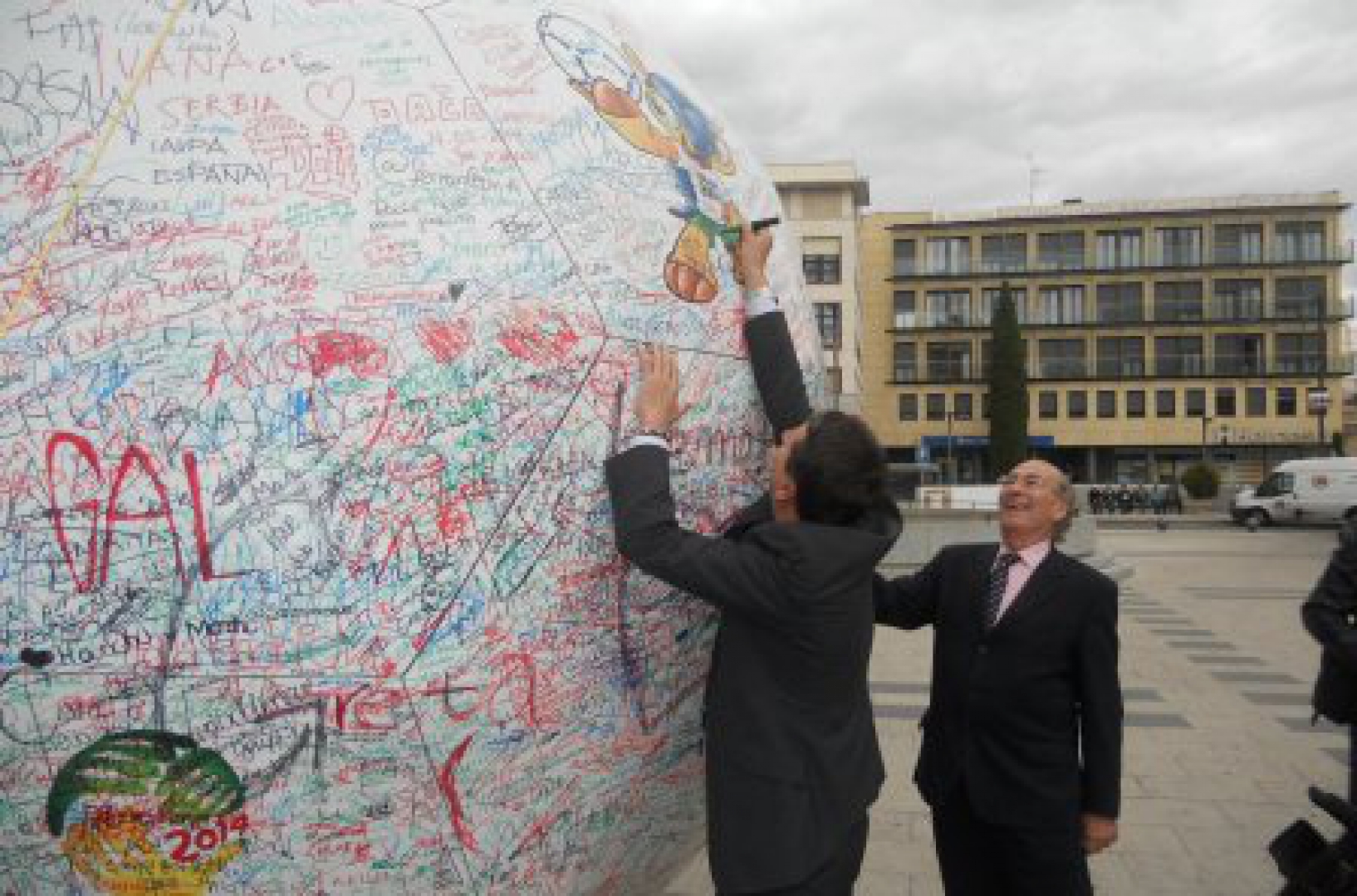 La idea es dejar plasmado, con un rotulador, un deseo, una frase de ánimo o lo que se quiera para intentar volver a ser campeones. Así de sencillo y hasta las 20.30 horas de este miércoles. Después, el inmenso balón acabará en el Hyundai Fan Park de Madrid, en un área especial para ella. Y en él se condensarán las frases de mayores y pequeños, de incondicionales de la Selección o simpatizantes, y también, de concejales de Guadalajara, como el de Seguridad, Juventud y Tráfico, Armengol Engonga, o el de Obras y Festejos, Jaime Carnicero, o el edil de Deportes, Eladio Freijo, que además de firmar agradeció públicamente a la firma su iniciativa.