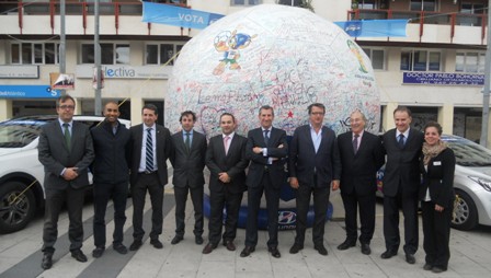 Esta iniciativa se ha propuesto recoger los mejores deseos de los españoles destinados a animar a la Selección de Fútbol en el Mundial. Hay también mensajes para el Real Madrid y el Atlético de Madrid, pero lo que más hacen es animar a la Selección para que volvamos a ser campeones, explicaba esta tarde Pedro Cangas, asesor comercial de Hyundai Guadalajara, del concesionario Santón Oliva.