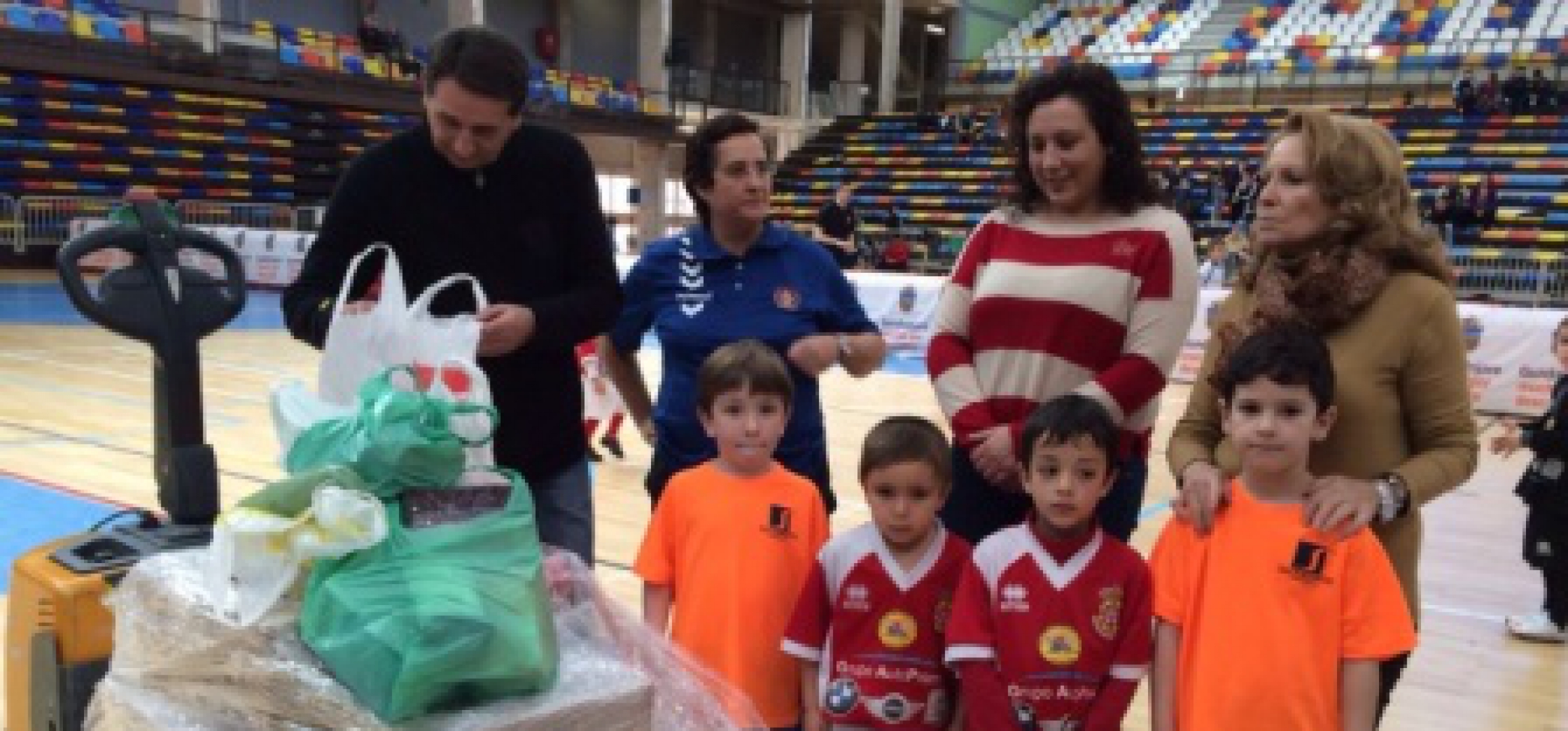 La entrega de los citados 400 kilos de alimentos se efectuó ayer durante uno de los partidos de la liga prebenjamín de fútbol sala celebrado en las instalaciones del Palacio Multiusos.