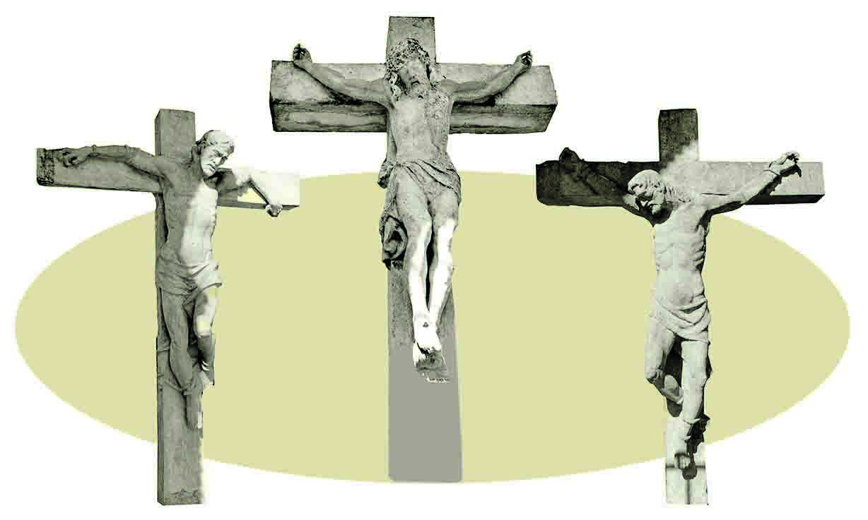 Las figuras existentes en el Calvario de El Casar son Cristo, Dimas y Gestas.