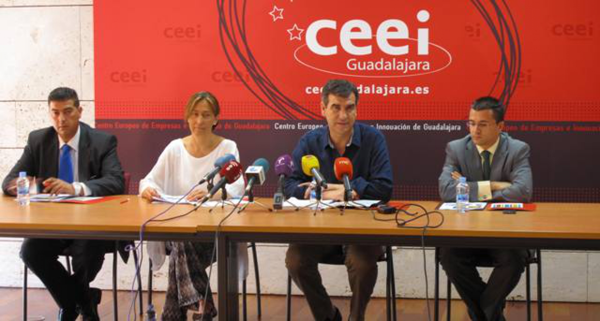 El Centro Europeo de Empresas e Innovación (CEEI) de Guadalajara se encuentra al 89 por ciento de ocupación, ya que actualmente tienen instaladas 43 empresas, de las que seis lo han hecho en el primer semestre del año. Estos datos fueron ofrecidos este lunes por el vicepresidente de la Fundación CEEI, Antonio Román, quien compareció junto a la presidenta de la Diputación, Ana Guarinos; el secretario general de CEOE-Cepyme Guadalajara y el director del CEEI, Javier Arriola; y el presidente de Apeti, Francisco Bonilla.