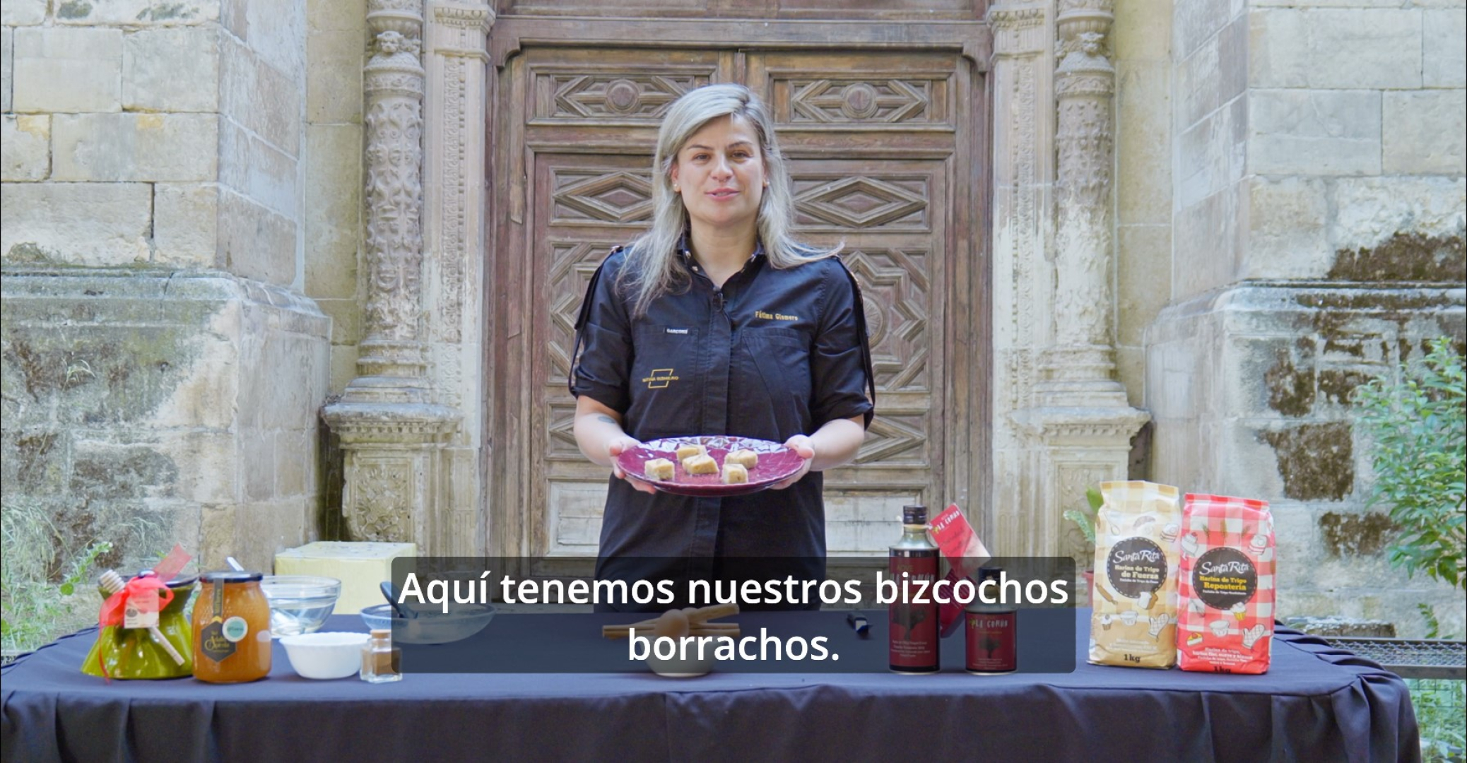A lo largo del recorrido audiovisual, Fátima Gismero establece un diálogo entre patrimonio y gastronomía, subrayando el valor cultural de la repostería tradicional. Durante la grabación, elabora un bizcocho borracho, uno de los dulces más representativos de la provincia, utilizando productos locales como harinas de Santa Rita, aceite de La Común y miel de la Alcarria, en homenaje a la tradición repostera ligada históricamente a conventos y obradores.