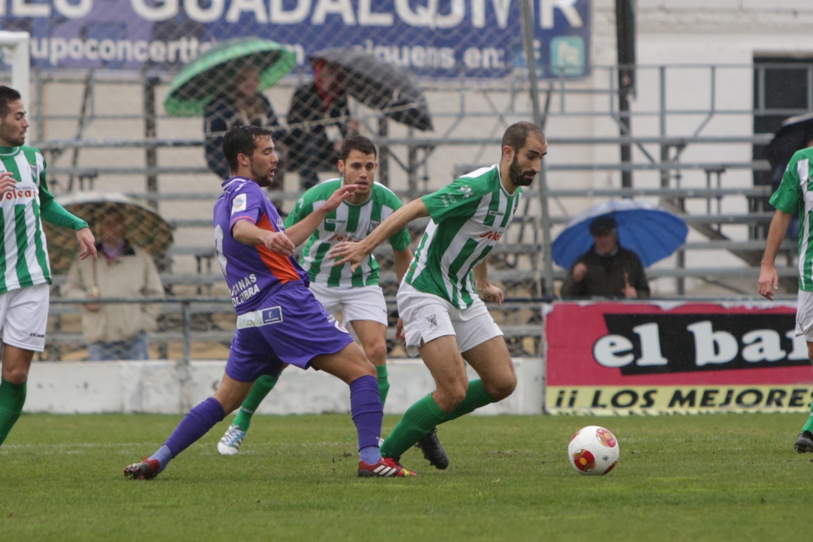 Además, el cuadro de Carlos Pérez Salvachúa aprovechó el pinchazo del Cádiz ante La Hoya en la matinal del domingo para arrebatarle la cuarta plaza y poner tierra de por medio con sus perseguidores. El partido no fue vistoso en la primera parte. El Sanluqueño del ex morado Antonio Moreno, presionado por la situación de la tabla, lo intentaba ante un Guadalajara que esperaba bien agazapado atrás durante los primeros compases. Debido a la lluvia el terreno de juego estaba muy rápido, aunque tenía buen aspecto. El equipo local empezó con ahínco. Pronto avisó con un cabezazo de Beñat que se marchó cerquita del larguero. Tres minutos después Poley sacó una falta directa e hizo lucirse al cancerbero Álvaro Campo.