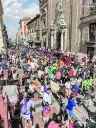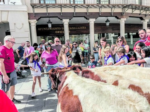 La calle Mayor ha vivido esta mañana una auténtica explosión de alegría y color con la celebración del encierro chico, organizado por la Federación Taurina de Guadalajara. La masiva afluencia de público infantil ha abarrotado literalmente el recorrido, desde Plaza Mayor a Santo Domingo, en una cita que se consolida como uno de los momentos más entrañables de las Ferias.