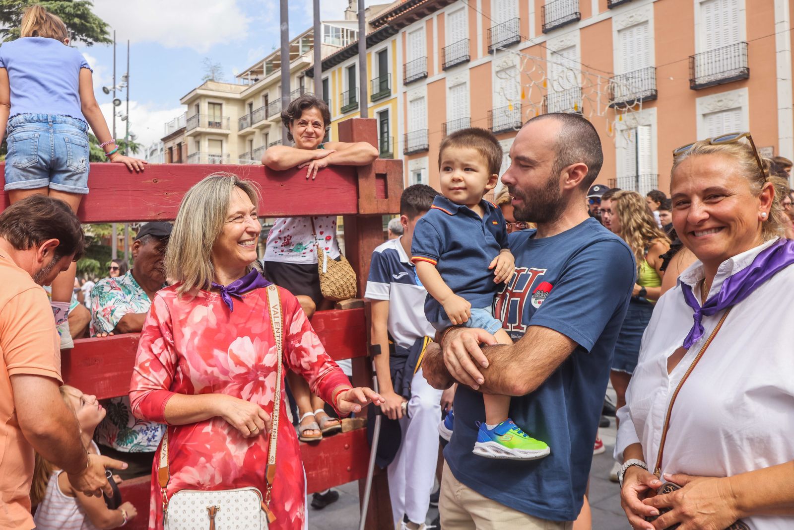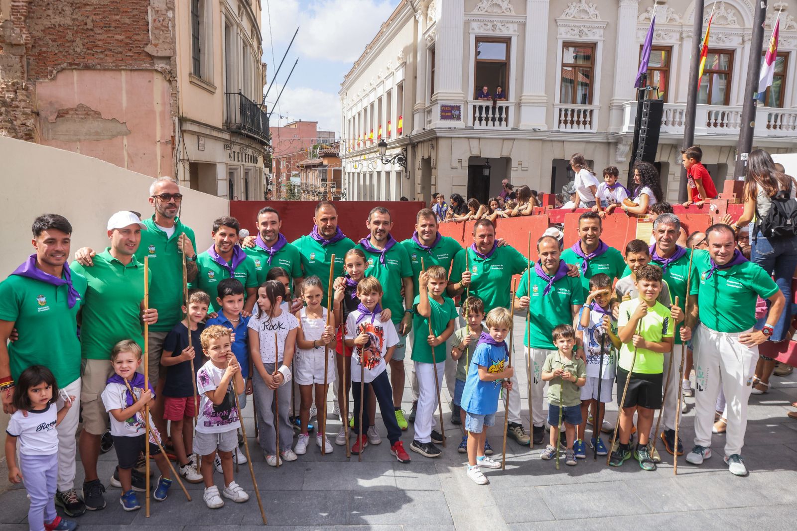 Tras la subida y la bajada del encierro chico, la Plaza Mayor, con las gradas repletas, ha sido el epicentro de la emoción y la tradición cuando, ya sin carreras, todos los pequeños han podido contemplar de cerca a estos becerritos, e incluso alguno tenía preparado su pequeño capote.