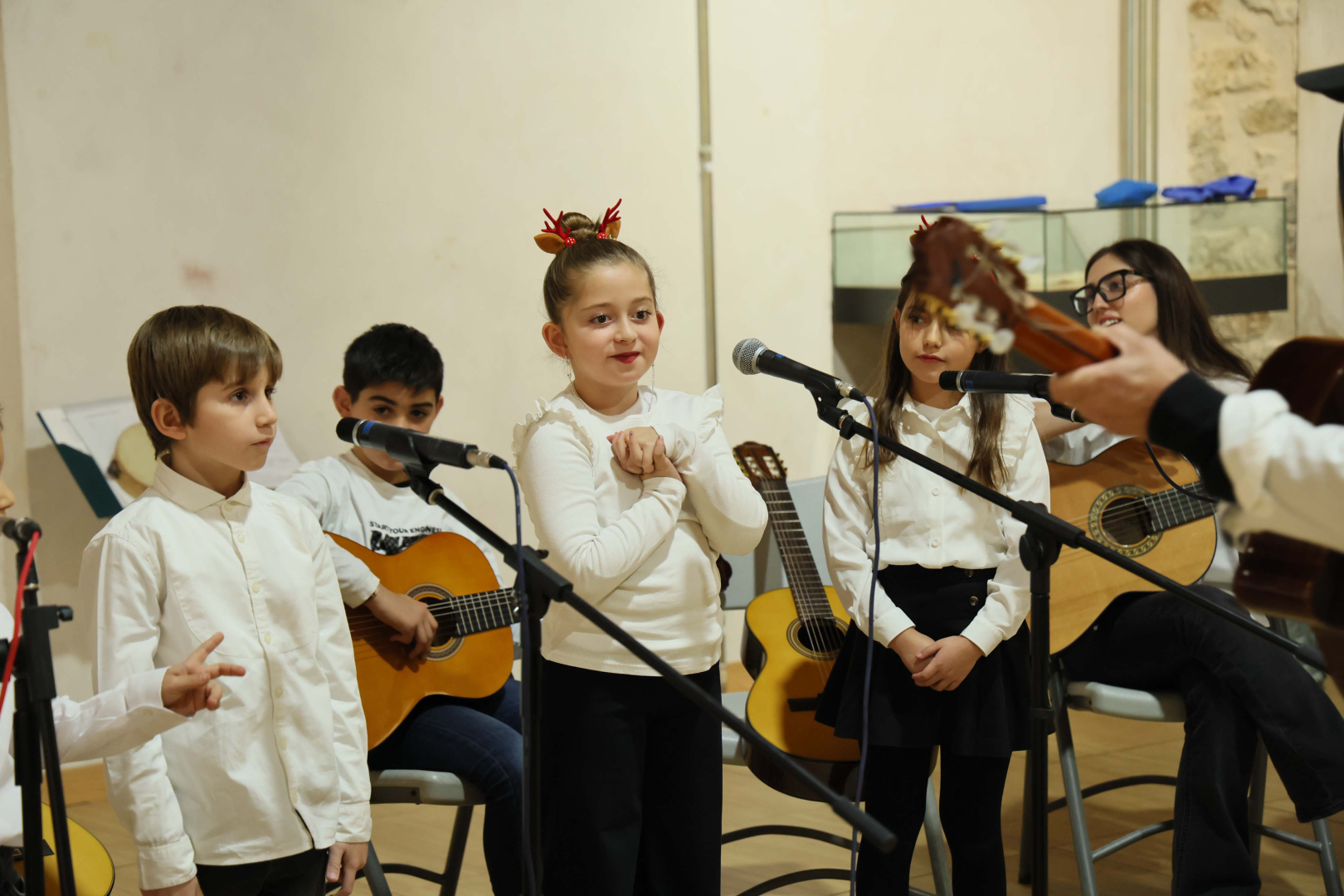 El alcalde de Almonacid, José Miguel López, fue el encargado de abrir institucionalmente una velada que comenzó con la actuación de la Escuela Municipal de Música de Albalate. Bajo la dirección de Manuel Fuentes, catorce niños de entre cinco y siete años —la cantera esencial de la comarca— interpretaron piezas como Burrito Sabanero o A Belén, esta última compuesta por el propio Fuentes hace más de un cuarto de siglo. El director subrayó la importancia de mantener estas escuelas para que "surjan nuevas vocaciones" y la tradición no se pierda.