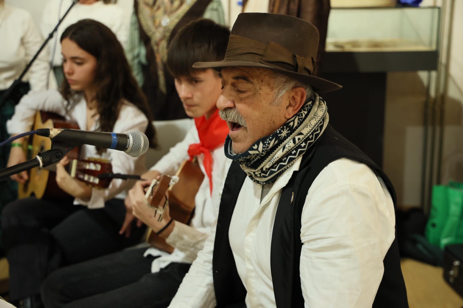 El relevo en el escenario lo tomó el grupo Albazor, formación de Albalate de Zorita que desde 1980 se dedica a la recuperación del folk castellano. Con una trayectoria de más de cuarenta años, el grupo encandiló al auditorio con temas como Los tres Reyes o El Arroró, demostrando por qué son un referente en la conservación de seguidillas, mayos y jotas.