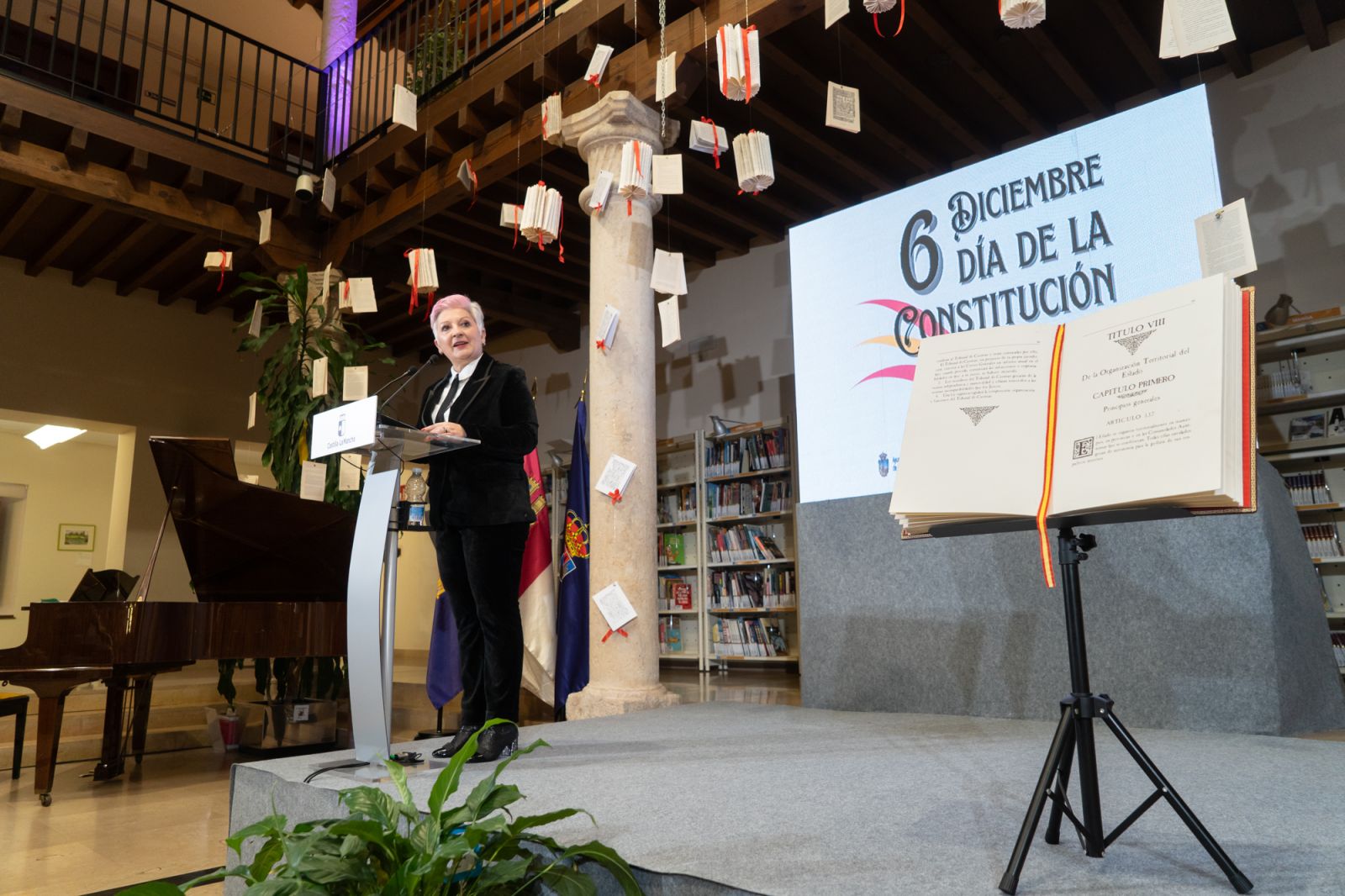 Durante su intervención, la delegada ha subrayado la elección de la Biblioteca como escenario del acto por las “profundas interacciones entre una biblioteca pública y nuestra Carta Magna”, explicando que “las dos comparten una misma y profunda finalidad: ambas protegen y facilitan el acceso de las personas a la palabra, al conocimiento, a la Cultura, a la información y a la libertad de pensamiento”.