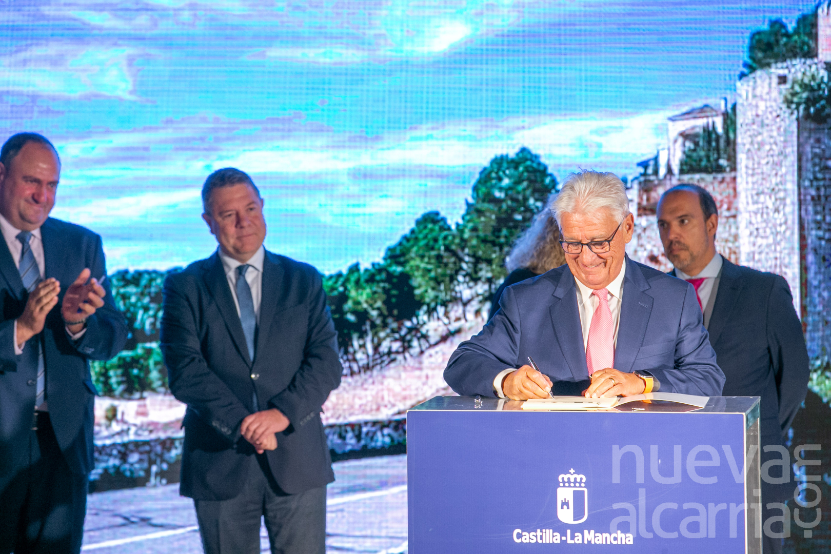 El presidente de la Federación de Asociaciones para el Desarrollo Territorial del Tajo-Tajuña (FADETA), Jesús Ortega, firmó ayer en Alarcón con el presidente de Castilla-La Mancha, Emiliano García Page, y con el consejero de Agricultura, Ganadería y Desarrollo Rural, Julián Martínez Lizán, el convenio para la asignación de fondos Leader de cara al periodo 2023-2027.