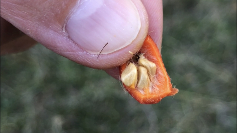 Después, nos encontramos con el escaramujo o también conocido como “rosal canino, porque la flor es una rosa y canino es porque tiene muchas pinchas que te enganchan.” Además, Munilla reconoce que la población le conoce vulgarmente como “tapaculos” porque si a este fruto “no le quitas las semillas y unos pelos, que son los que hacen que se produzca ese picor en el culete o que te de la temida diarrea.” Pero afirma que si lo quitas es comestible un muy rico en vitamina C.