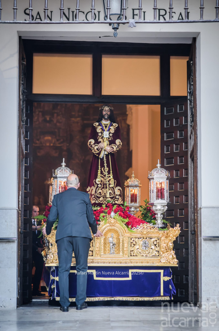 Este Jueves Santo llenó las calles del centro de Guadalajara con una de sus estampas más esperadas. A las 19:30 horas, las puertas de la iglesia de San Nicolás el Real se abrieron y el paso de Nuestro Padre Jesús Nazareno salió a la calle entre el respeto y la emoción contenida de cientos de personas.