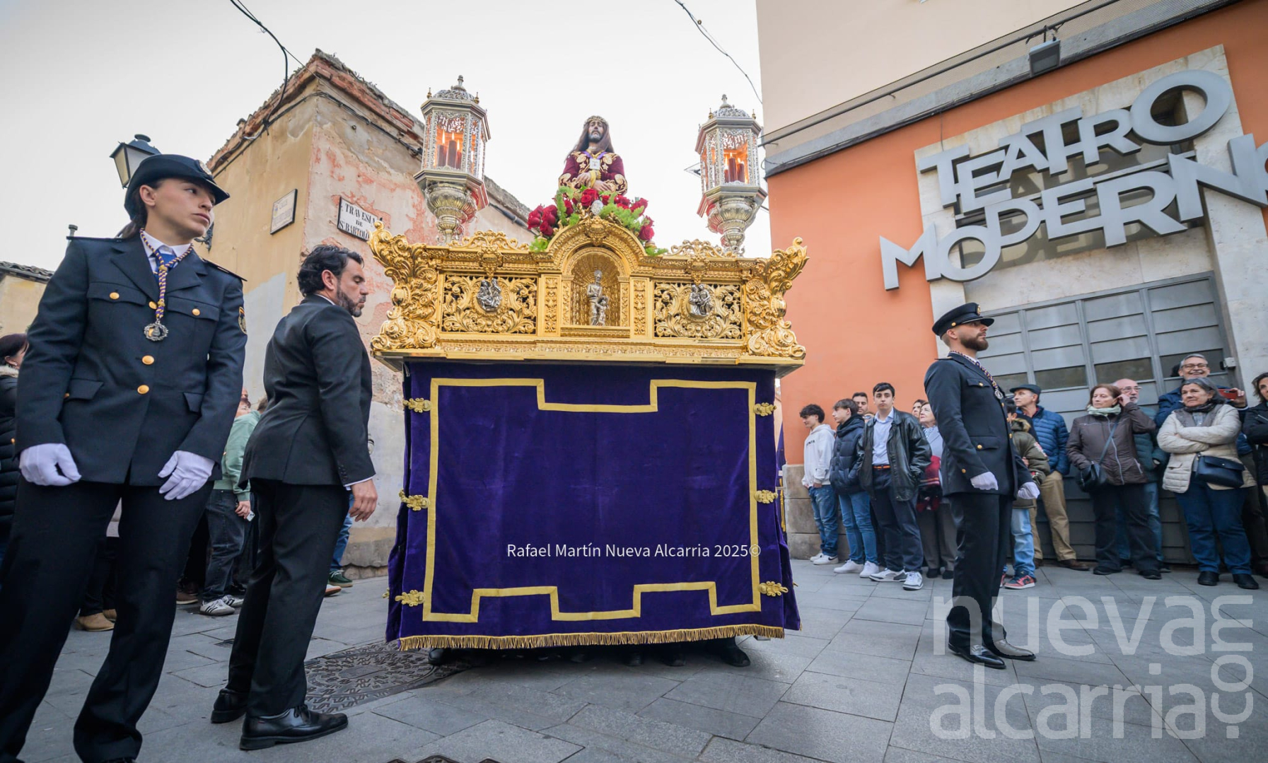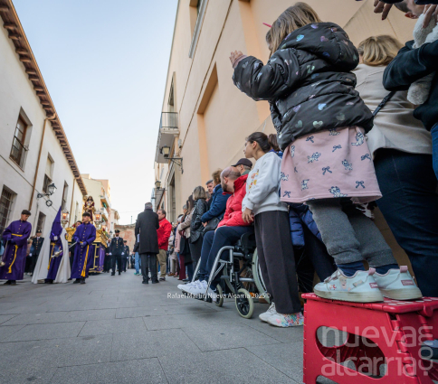 La Banda de Cornetas y Tambores Jesús Nazareno acompañaba el cortejo con marchas solemnes que llenaban el ambiente de solemnidad. El público, apretado en las aceras, guardaba silencio o susurraba palabras de admiración. Abuelos, familias con niños y muchos vecinos que salen cada año a ver “a su Nazareno” vivieron uno de esos momentos en los que la ciudad se detiene y respira fe.
