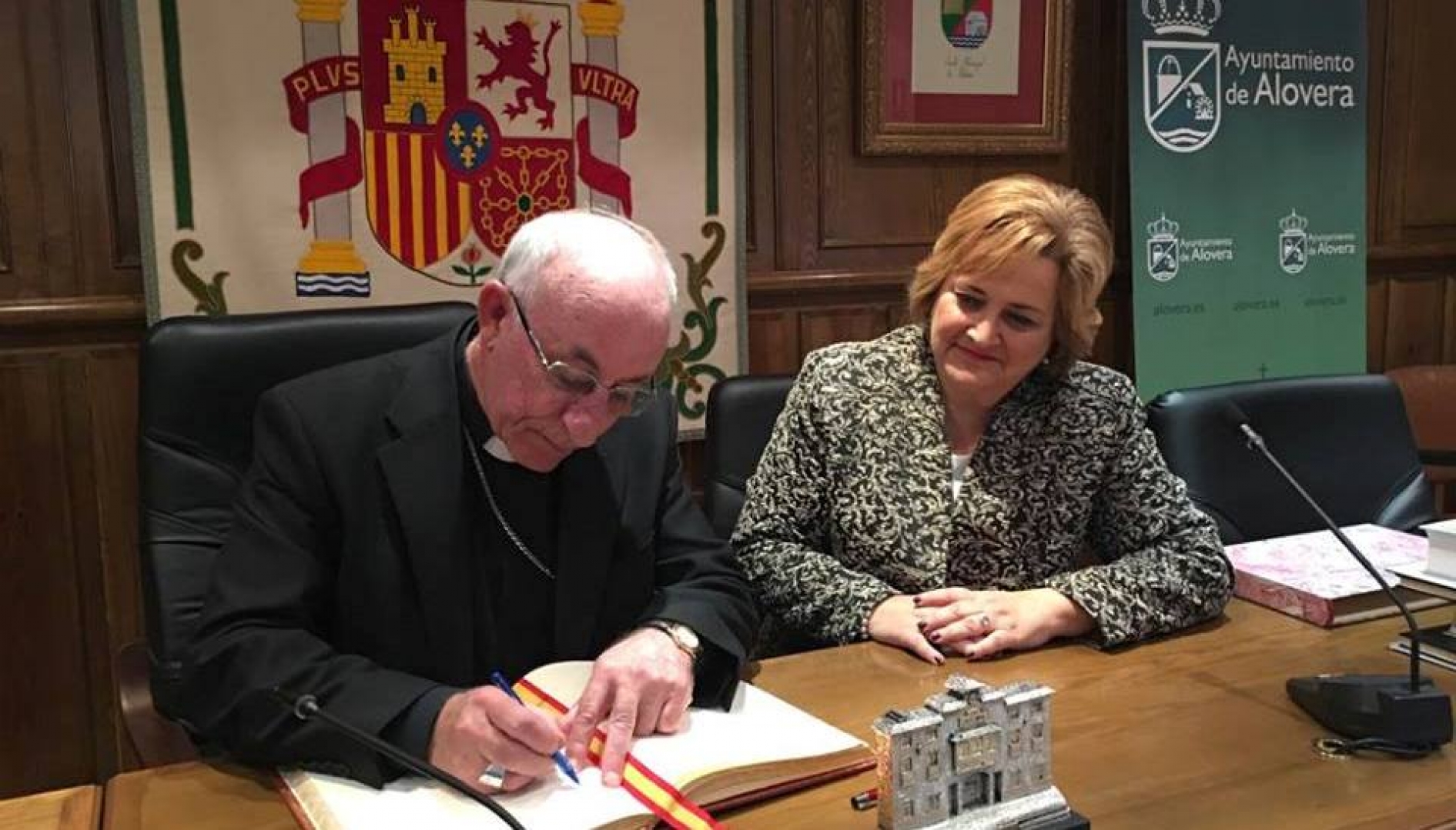 El obispo de la Diócesis Sigüenza-Guadalajara, Atilano Rodríguez, visitó esta semana el ayuntamiento de Alovera, dentro de su visita pastoral al municipio. Allí fue recibido por la corporación municipal, presidida por la alcaldesa Purificación Tortuero. El obispo Atilano Rodríguez aprovechó la ocasión para saludar a todos los empleados del Ayuntamiento. Posteriormente recibió un detalle en nombre del municipio y firmó en el libro de honor instalado en la casa consistorial.