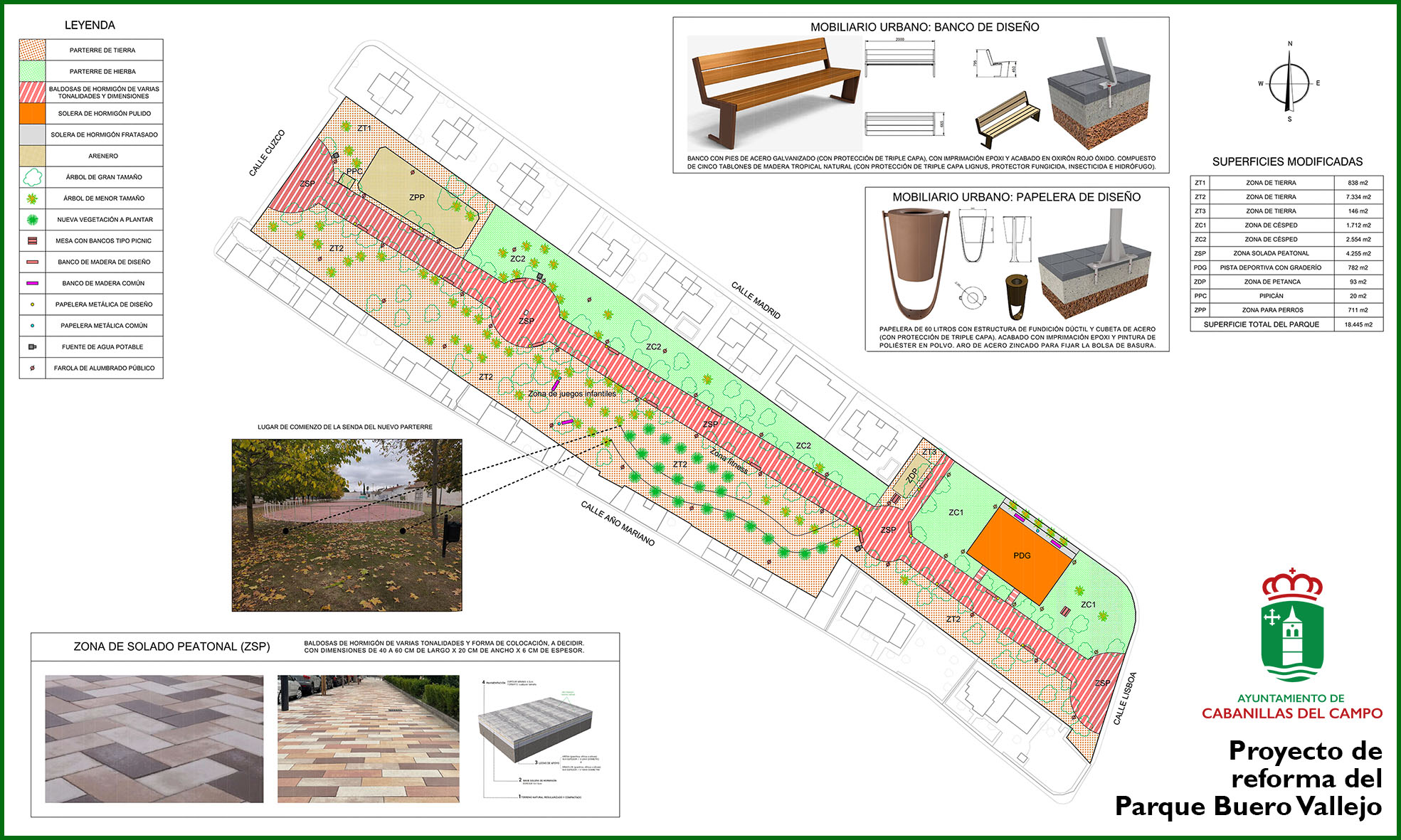 Con esta obra se pretende renovar todo el pavimento solado de las zonas peatonales, así como el mobiliario urbano que se encuentran en ellas. También se van a incrementar las zonas ajardinadas, y se va a dotar al parque de más praderas de césped de las que ahora mismo tiene. Asimismo, desaparecerá la vieja pista de patinaje, en desuso, para convertir esa zona en un recinto ajardinado. La actuación se complementa con introducción de nuevas especies de árboles y plantas, mejora del sistema de riego por goteo y otra serie de cuestiones técnicas.