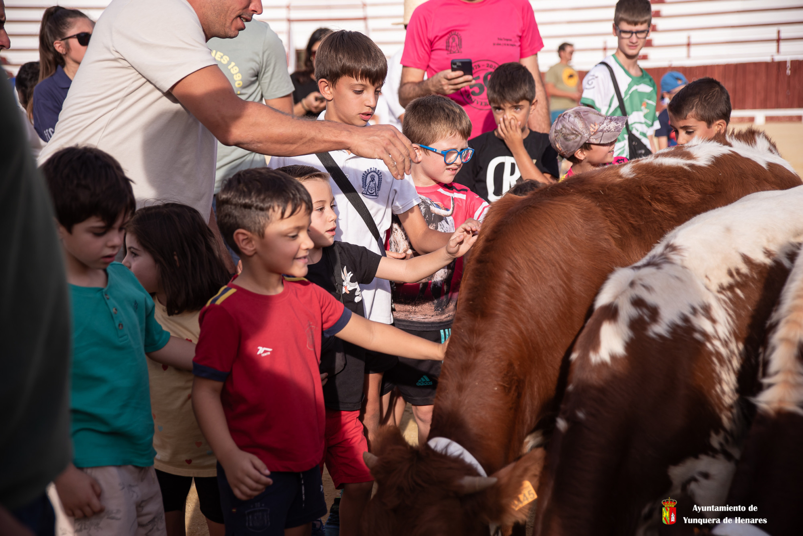 Los bueyes de la finca El Capricho, de Robledillo, fueron a su paso por el campo hasta la plaza de toros, arropados por los niños, que respetaron en todo momento a los animales. Al finalizar el recorrido, los más atrevidos pudieron posar junto a los animales, mientras reponían energía con un bollo y un zumo ofrecidos para la ocasión. Como cierre, los más curiosos recorrieron los toriles y conocieron de cerca los secretos del coso yunquerano.
