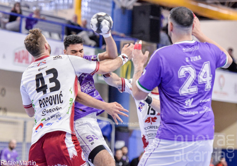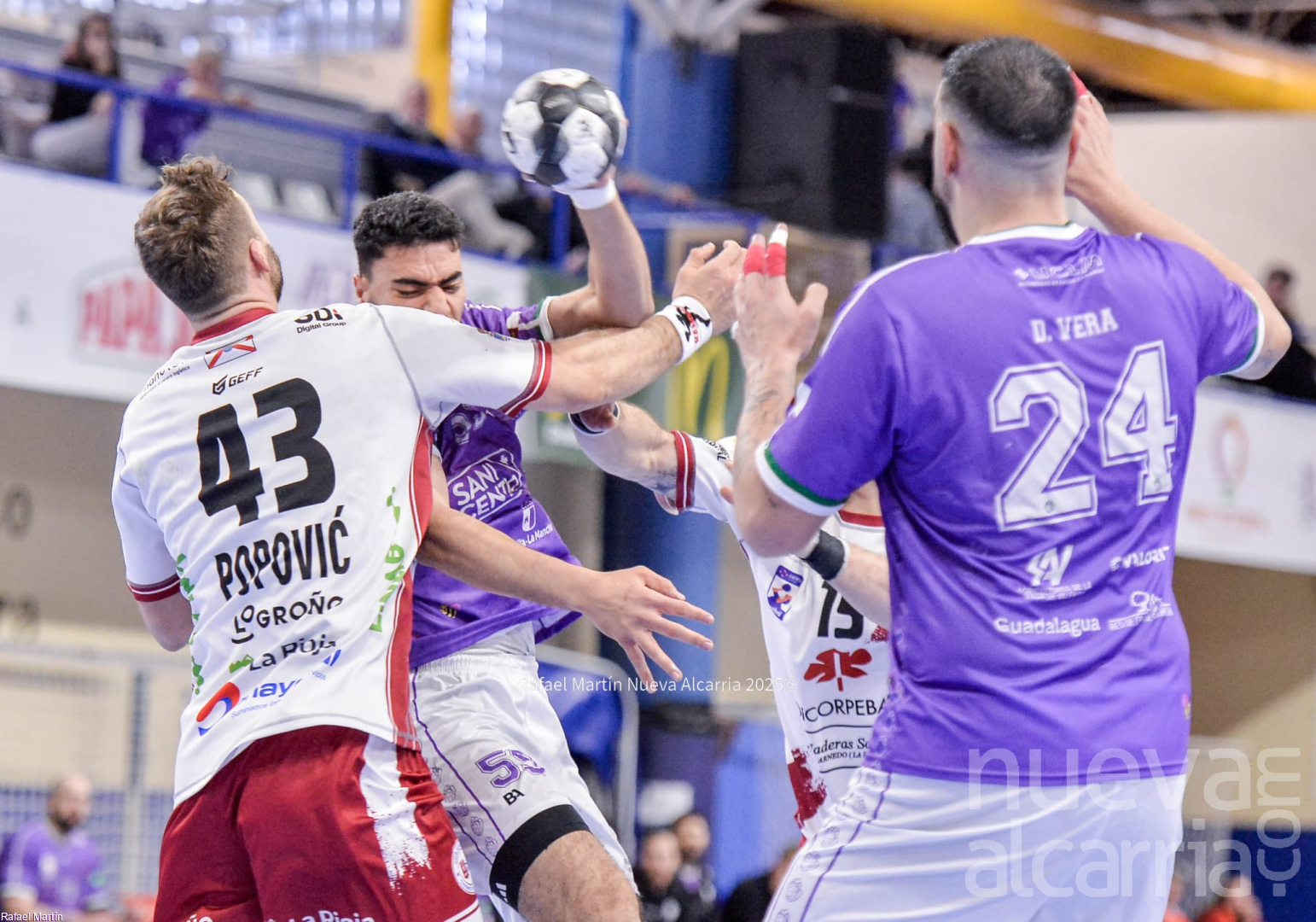 Los de Velasco no se sentían cómodos. Cancio respondía en portería, pero sus compañeros se mostraban imprecisos en la toma de decisiones. Guadalajara llegó a manejar ventajas de dos goles y supo castigar las superioridades. Un tanto de Manu Catalina en los últimos segundos, con un jugador más sobre la pista, establecía el 16-16 al descanso y desataba la ilusión en la grada.