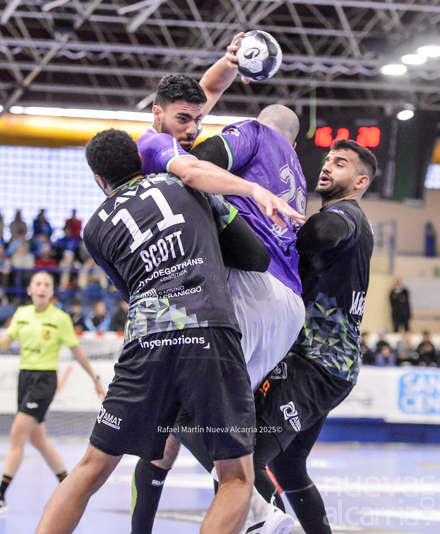 El Sanicentro Guadalajara cerró el año en casa con una derrota contundente ante un Bathco Torrelavega que confirmó desde el primer minuto por qué es uno de los equipos más sólidos de la Liga Asobal. El 30-44 final reflejó la diferencia entre ambos conjuntos en un encuentro en el que los visitantes impusieron su ritmo, su profundidad de banquillo y su eficacia ofensiva, aunque durante buena parte de la primera mitad los morados supieron competir y plantar cara.