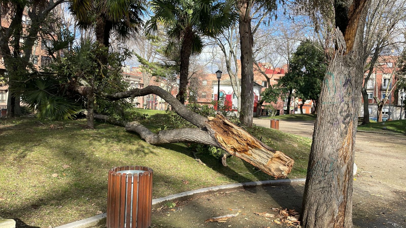 Otro ejemplo de ello fue la caída de una enorme rama en el parque de la Concordia de la capital y de otro árbol junto al colegio Cardenal Gonzáles de Mendoza.
