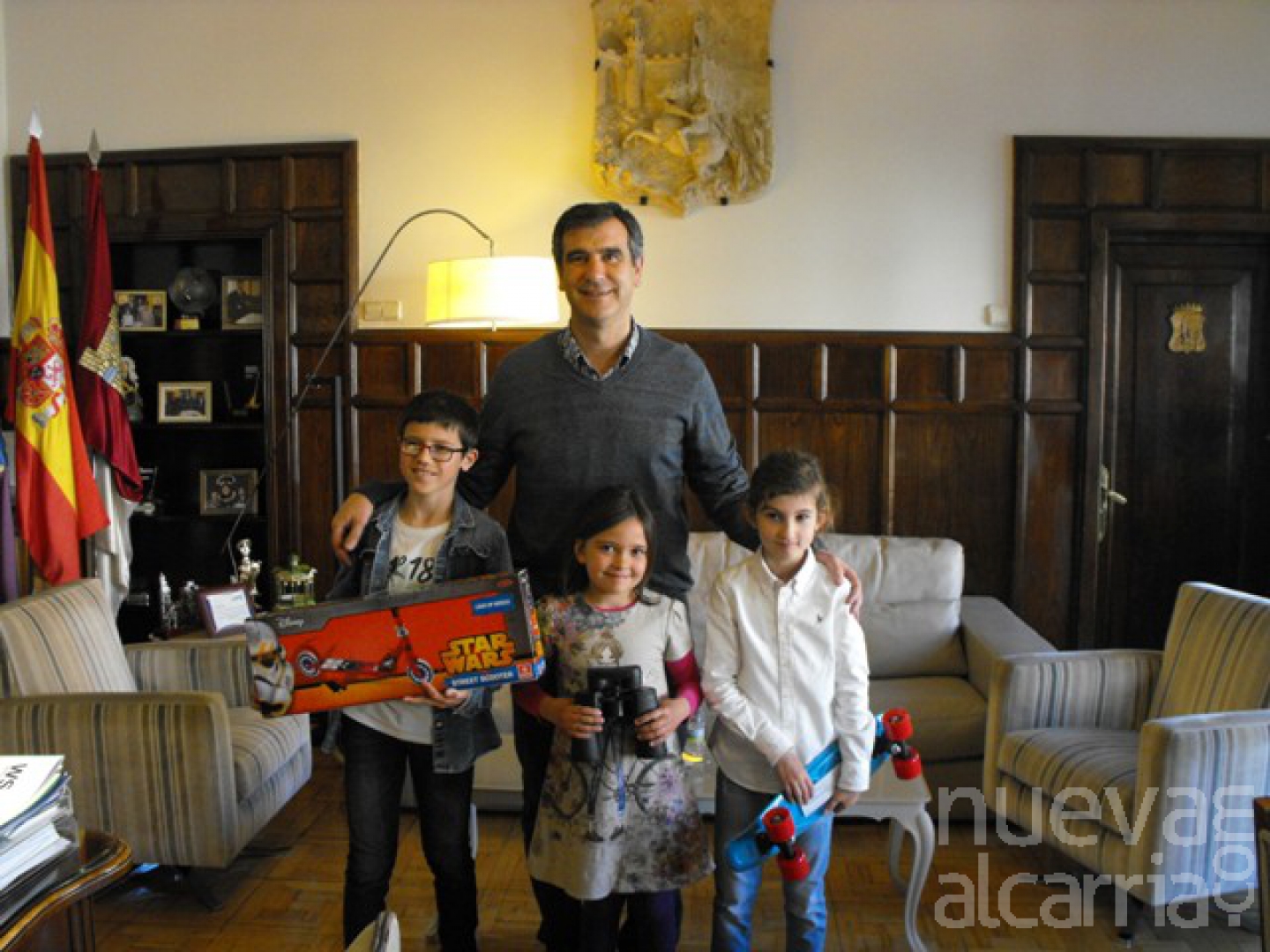 El alcalde de Guadalajara, Antonio Román, ha recibido en el Ayuntamiento a los ganadores del concurso de dibujo infantil “Guadalajara con otra luz” que se realizó el pasado 16 de abril en el Centro Municipal Integrado Eduardo Guitián.