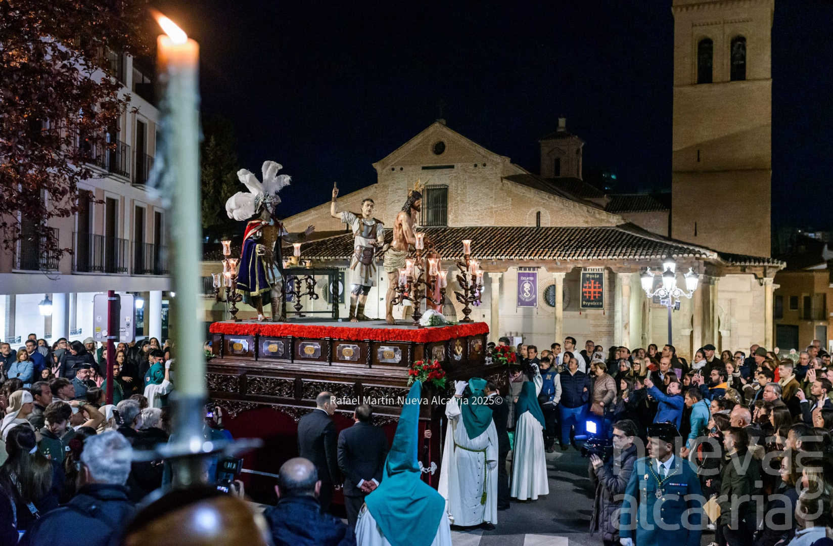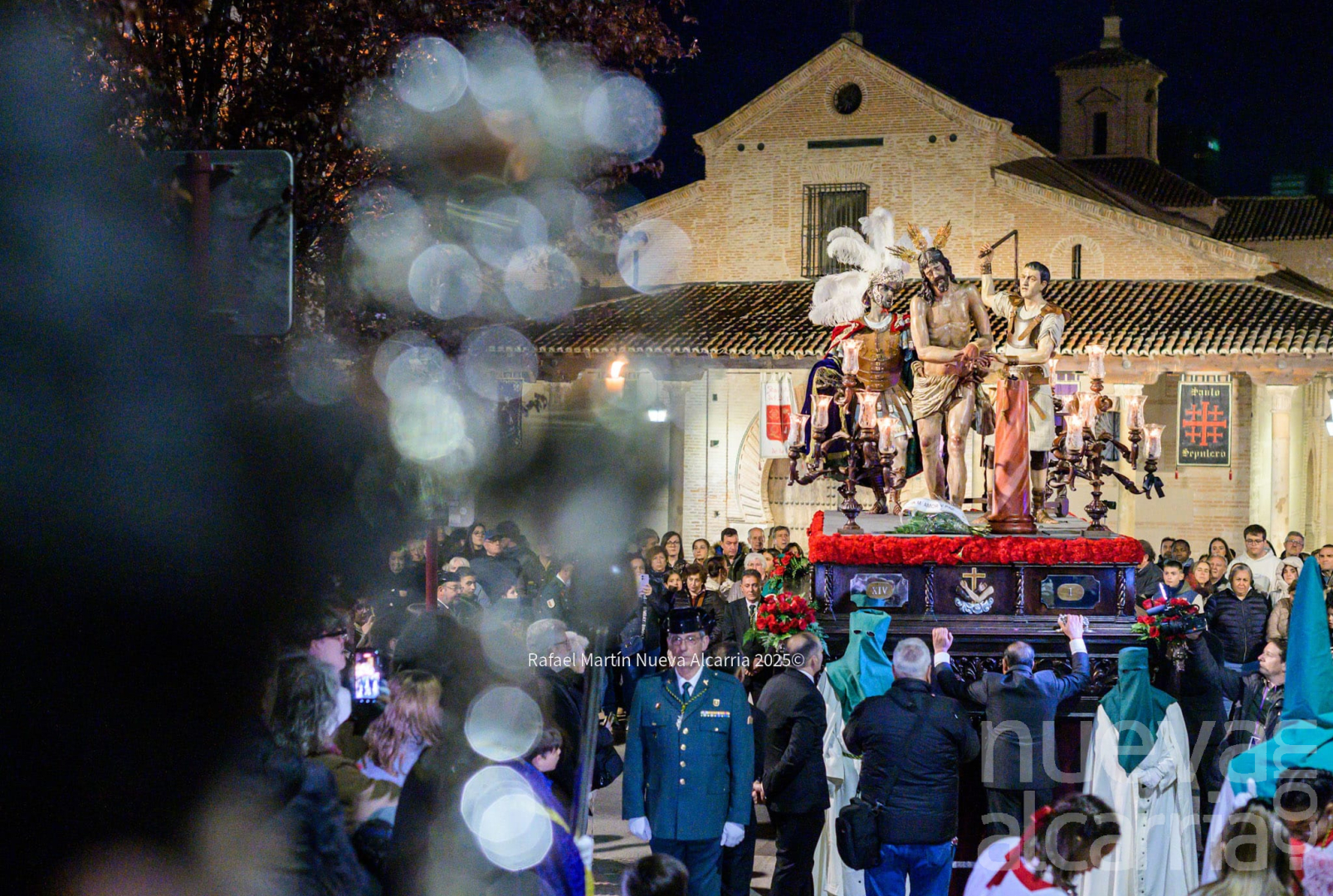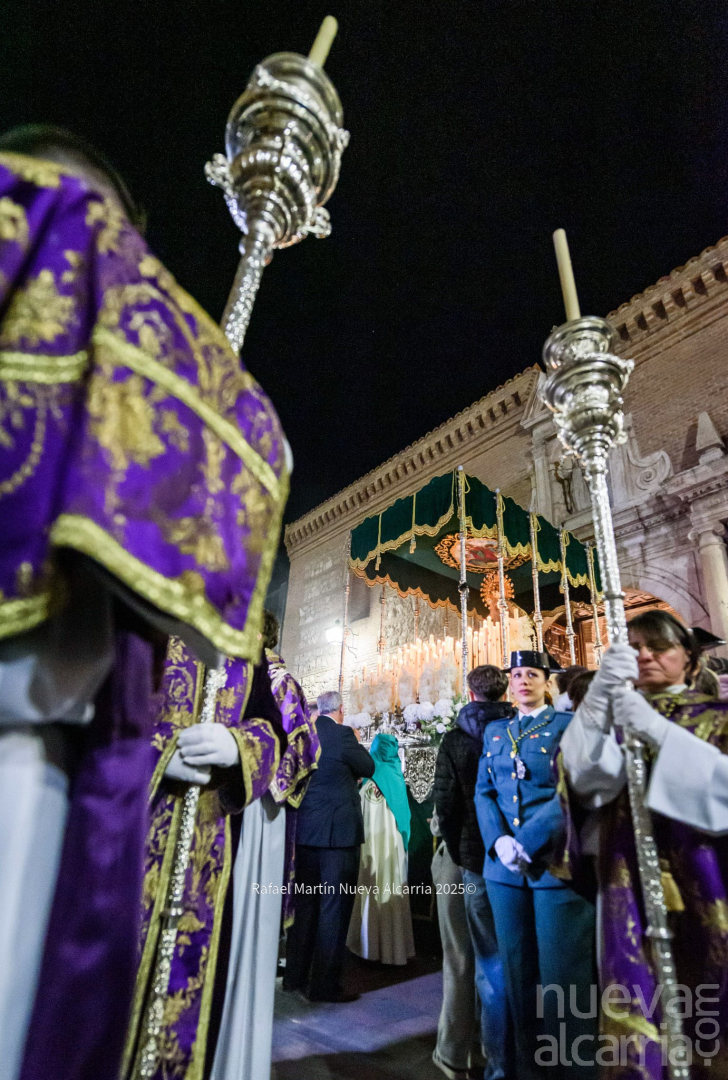 A las diez de la noche, las puertas de la iglesia de Santiago Apóstol se abrían para dar paso a la cruz de guía de la cofradía, y tras ella un largo cortejo de nazarenos que precedía a los titulares de la Hermandad, Jesús de la Salud en su paso de misterio, y la imagen de Nuestra Señora bajo palio, con la advocación de la Esperanza Macarena. A sones de piezas como “Al Tercer Día”, la Agrupación Musical del Santísimo Cristo del Amor y de la Paz acompañó a la imagen de Cristo flagelado, mientras que la Banda Unión Musical de Membrilla fue la encargada de interpretar distintas marchas — tanto macarenas como dedicadas a otras advocaciones — tras el palio de la dolorosa.