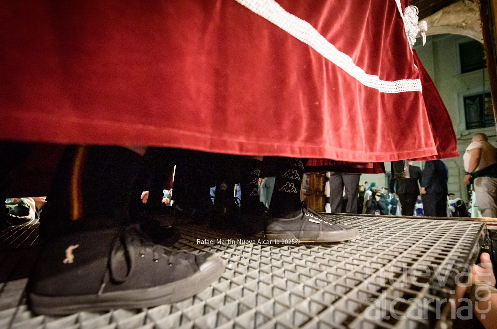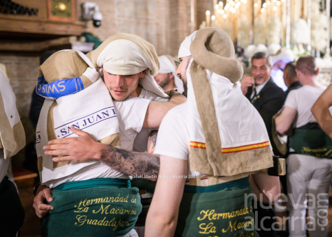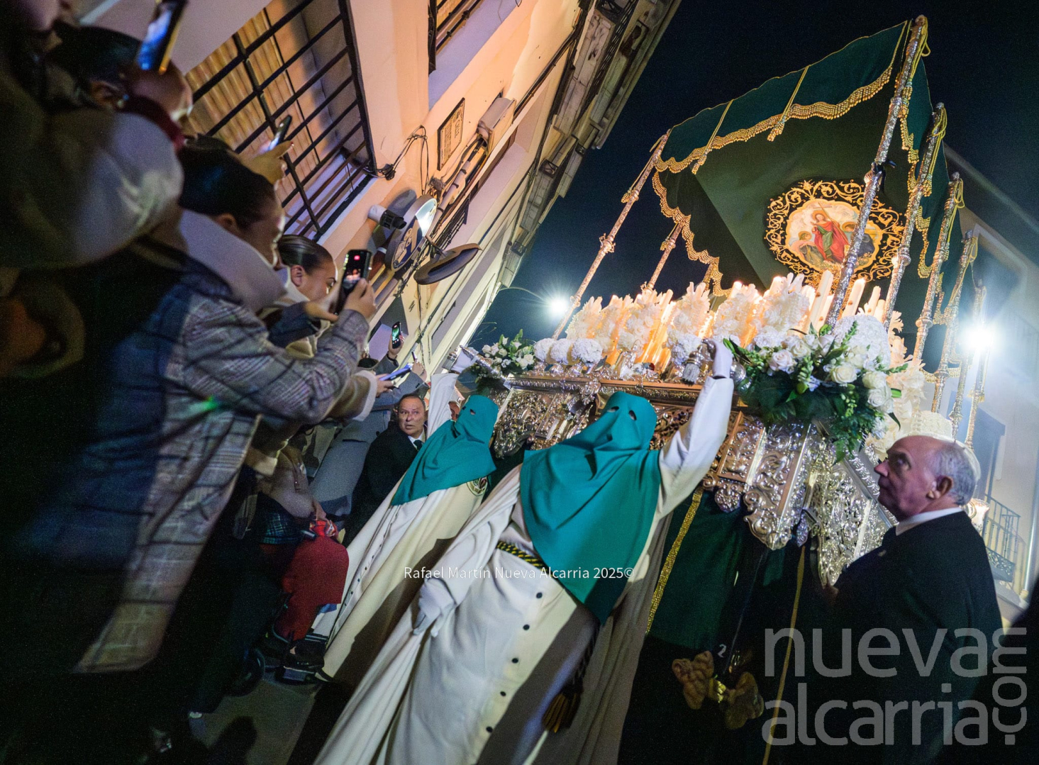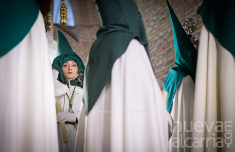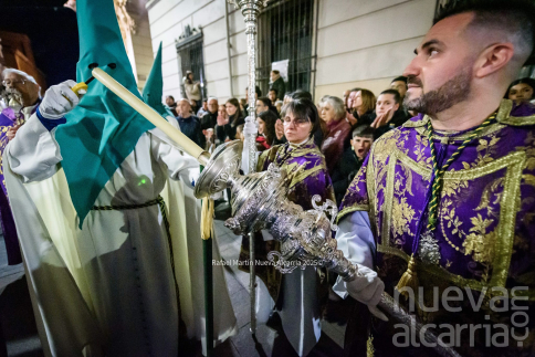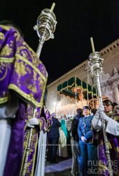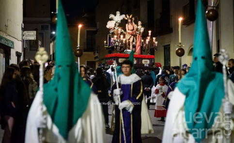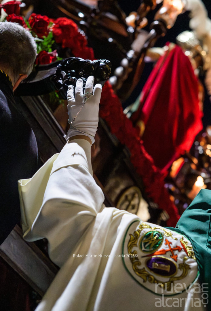 Con una complicada salida de los pasos por la puerta del templo, y una emotiva “petalá” en la calle Teniente Figueroa, la cofradía continuó su recorrido entre nubes de incienso hasta la Concatedral de Santa María la Mayor para después subir por la Cuesta de San Miguel. Es en este tramo donde los costaleros y capataces de ambos pasos demostraron especialmente su gran esfuerzo, coordinación y devoción, entonando además el Ave María al son de “Encarnación Coronada”. A continuación, la Hermandad realizó su estación de penitencia en la iglesia de San Nicolás el Real, para finalmente enfilar la Calle Mayor de regreso al antiguo Convento de Santa Clara. En todo momento estuvo acompañada por un gran número de fieles, que se santiguaban a su paso, oraban, o simplemente observaban con curiosidad y devoción el tradicional reparto de salud y esperanza que realiza esta cofradía.