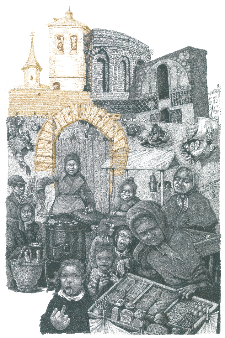 En la plaza de San Gil se instalaron con el paso del tiempo emblemáticos comercios de la ciudad. Recordemos la historia. Dibujo de la portada: José Luis Pradillo.