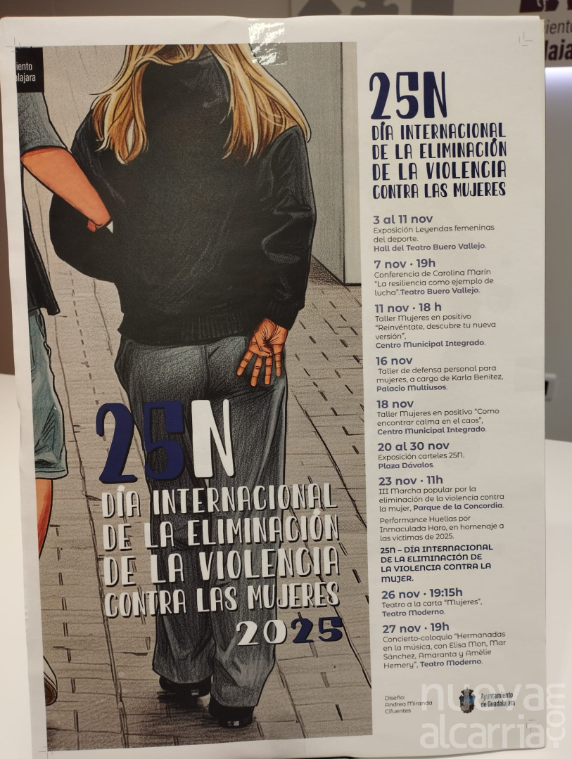 Una decena de actividades integran el programa elaborado por el Ayuntamiento de Guadalajara con motivo del Día Internacional de la Eliminación de la Violencia contra las Mujeres, el 25 de noviembre. En todas ellas se podrá ver el cartel ganador del concurso cuya autora es Andrea Miranda Cifuentes. En él se puede ver a una mujer que está sufriendo violencia y está haciendo el gesto de solicitud de auxilio. Todos los carteles que se han presentado a dicho concurso podrán verse en una exposición que se instalará en la Plaza de Dávalos entre el 20 y el 30 de noviembre.