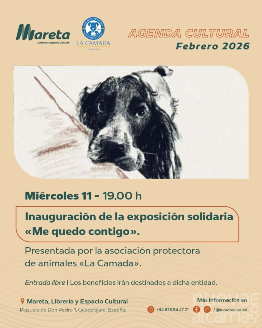 Este miércoles, 11 de febrero, a las 19.00 horas se va a inaugurar en la librería Mareta de Guadalajara la exposición 'Me quedo contigo', que busca concienciar sobre el abandono de los animales de compañía, una problemática que afecta de lleno a España y a Guadalajara.