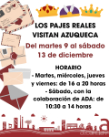 Del 9 al 13 de diciembre, los Pajes Reales recorrerán las calles de Azuqueca y visitarán “los hogares para recoger los deseos de niñas y niños”. Posteriormente, el 22 de diciembre, también se podrá ver en la ciudad a Papá Noel y Mamá Noel, que irán desde el espacio multifuncional La Caja a la Plaza Navideña -este año, se ha instalado en el aparcamiento junto al Ayuntamiento-, donde permanecerán el 23 y 24 de diciembre. Ya el 2 de enero, los Reyes Magos llegan a Azuqueca y atenderán a niños y niñas hasta el día 4 en la Plaza Navideña. El lunes 5, participarán en la Cabalgata y “llenarán las calles de ilusión y felicidad en las maravillosas carrozas que están preparando las Peñas Públicas”.